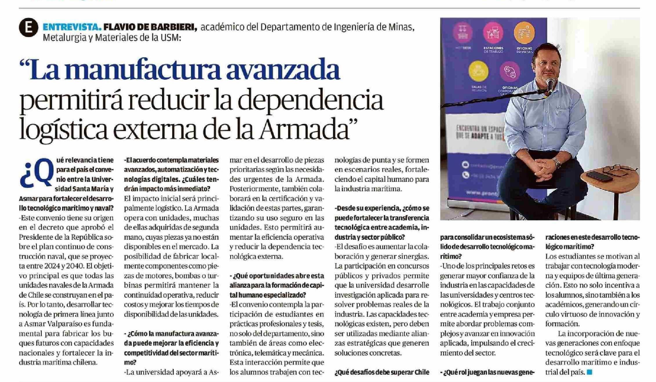“La manufactura avanzada permitirá reducir la dependencia logística externa de la Armada” 29-03-2026 El Líder |