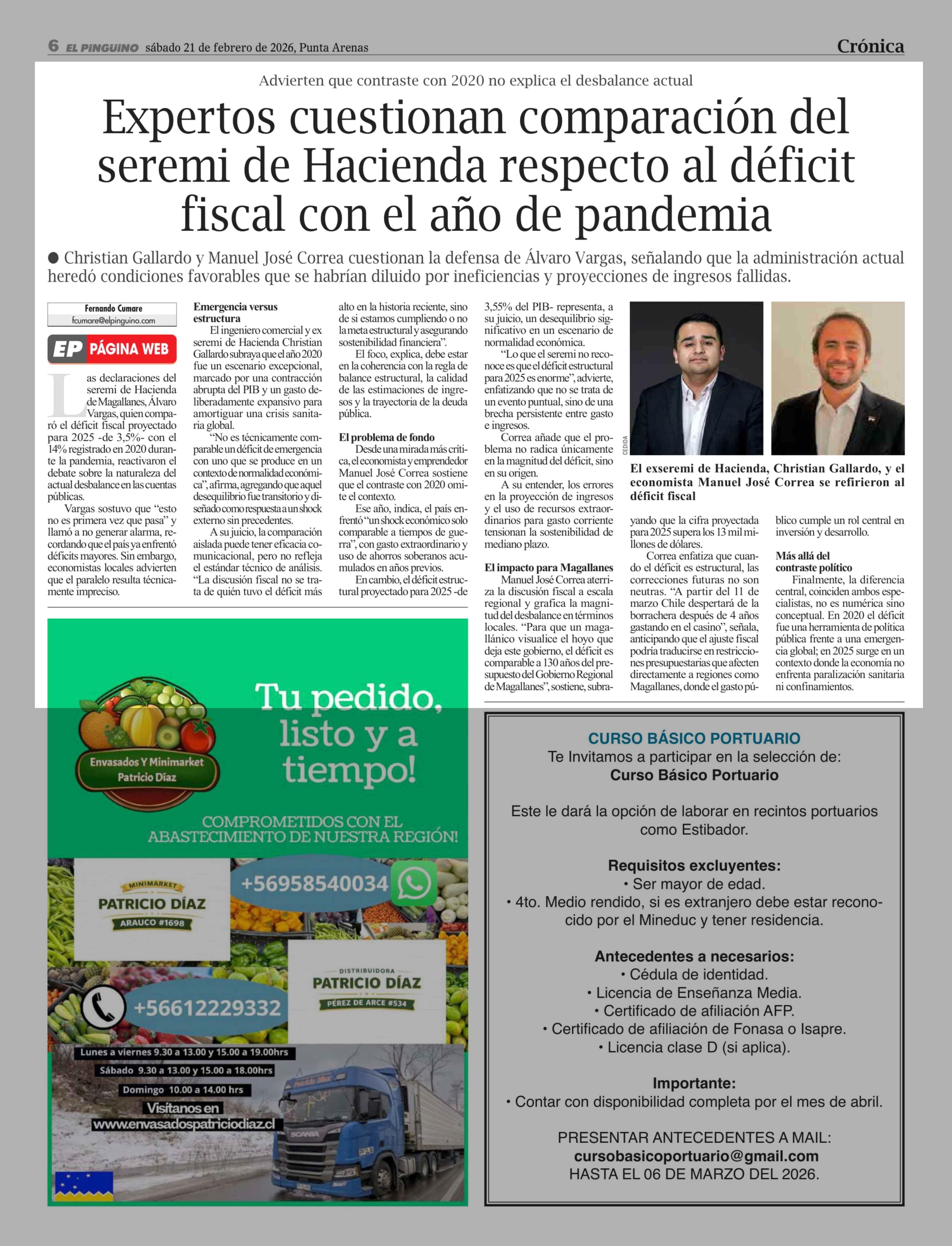 Expertos cuestionan comparación del seremi de Hacienda respecto al déficit fiscal con el año de pandemia 21-02-2026 El Pingüino |