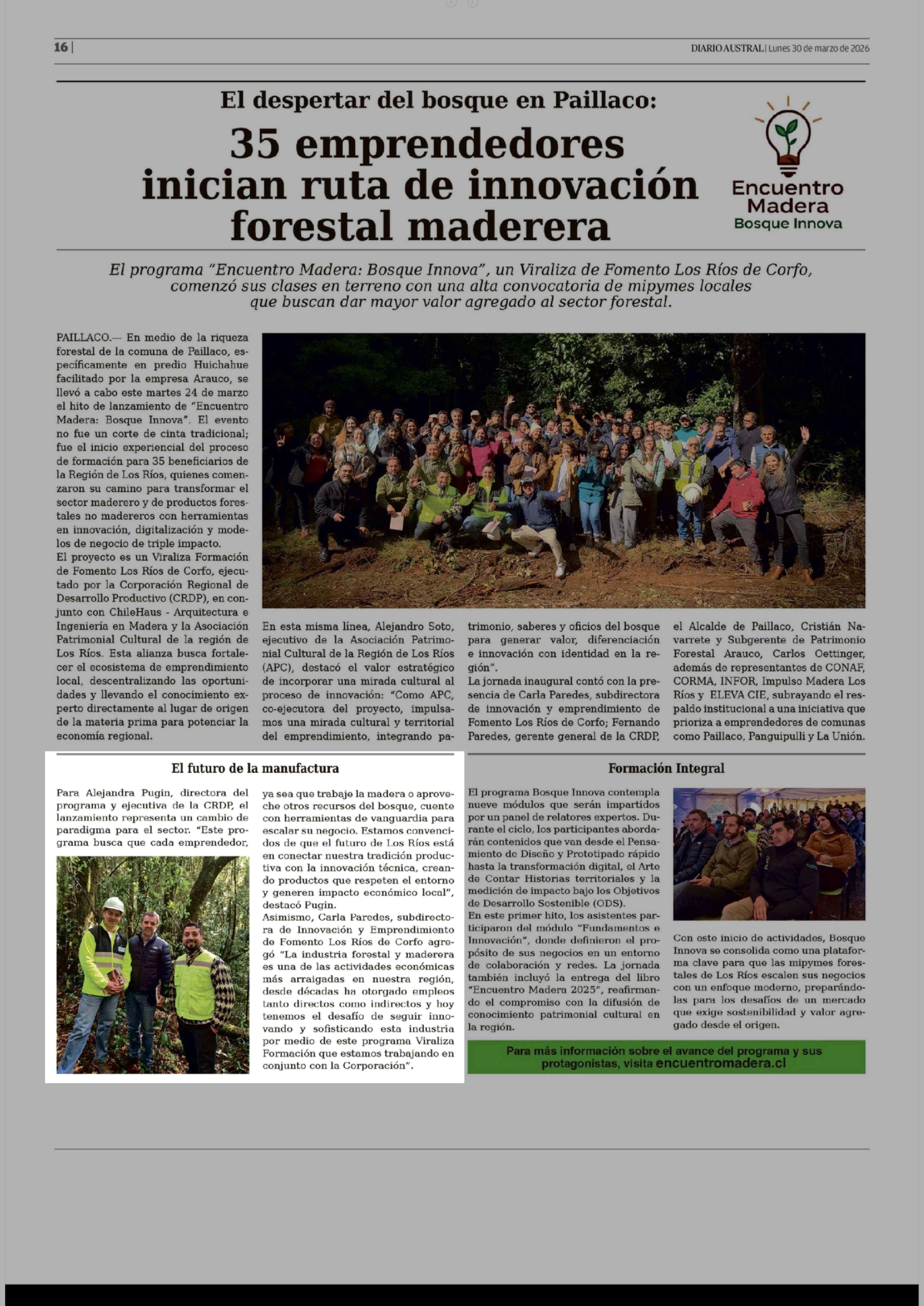 El futuro de la manufactura 30-03-2026 Diario Austral Región de Los Ríos |