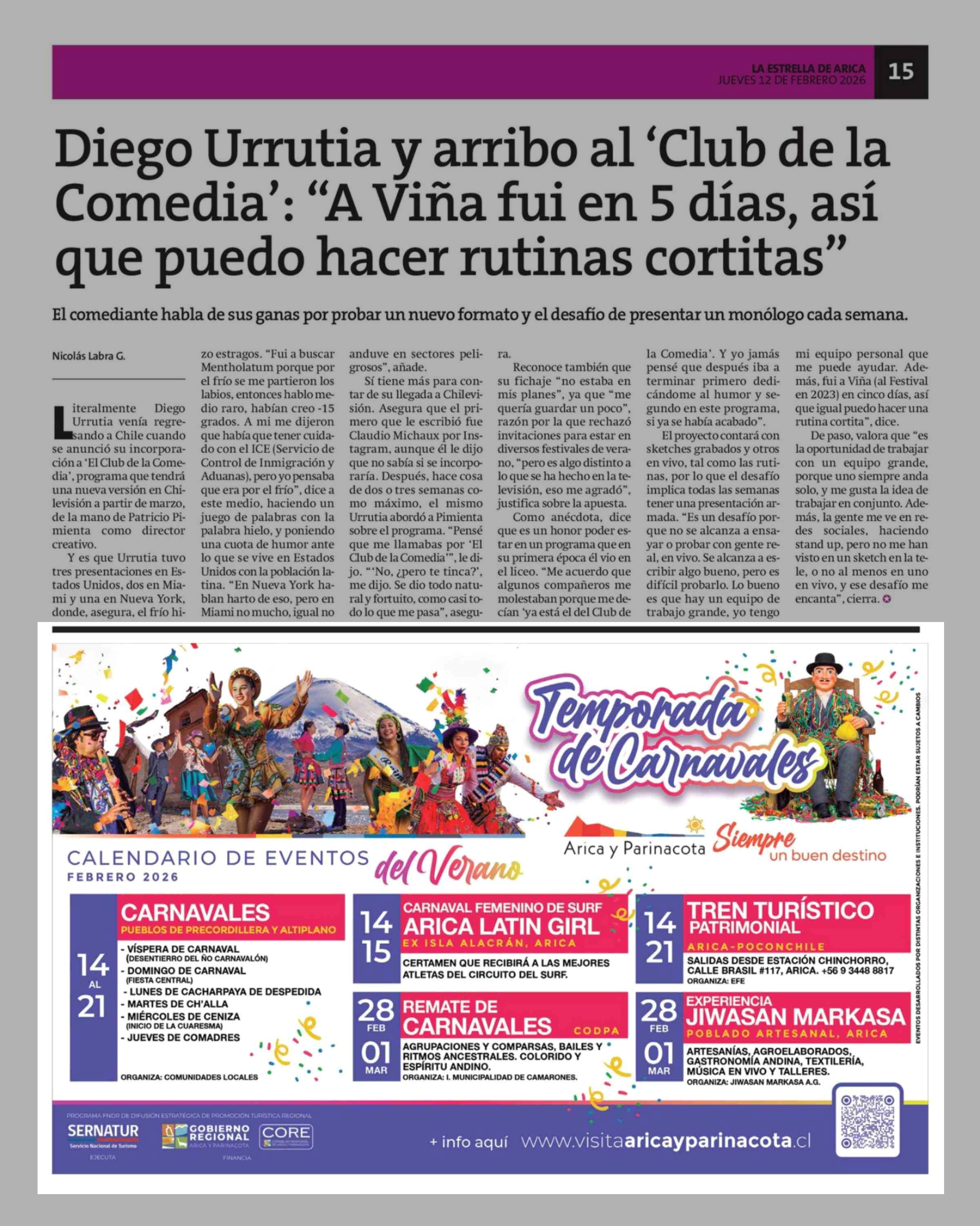 Fecha: 12-02-2026 Sector: Aviso Publicitario Región: Región de Arica y Parinacota