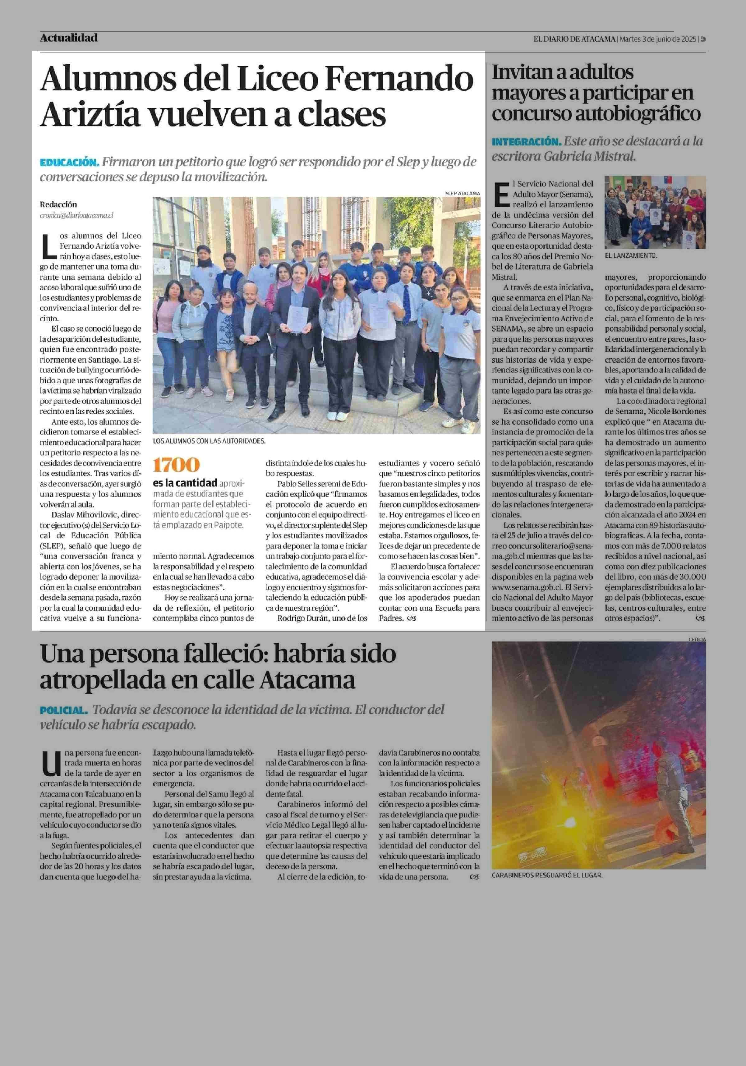 Fuente: El Diario de Atacama (El Diario de Atacama) Página(s): 5