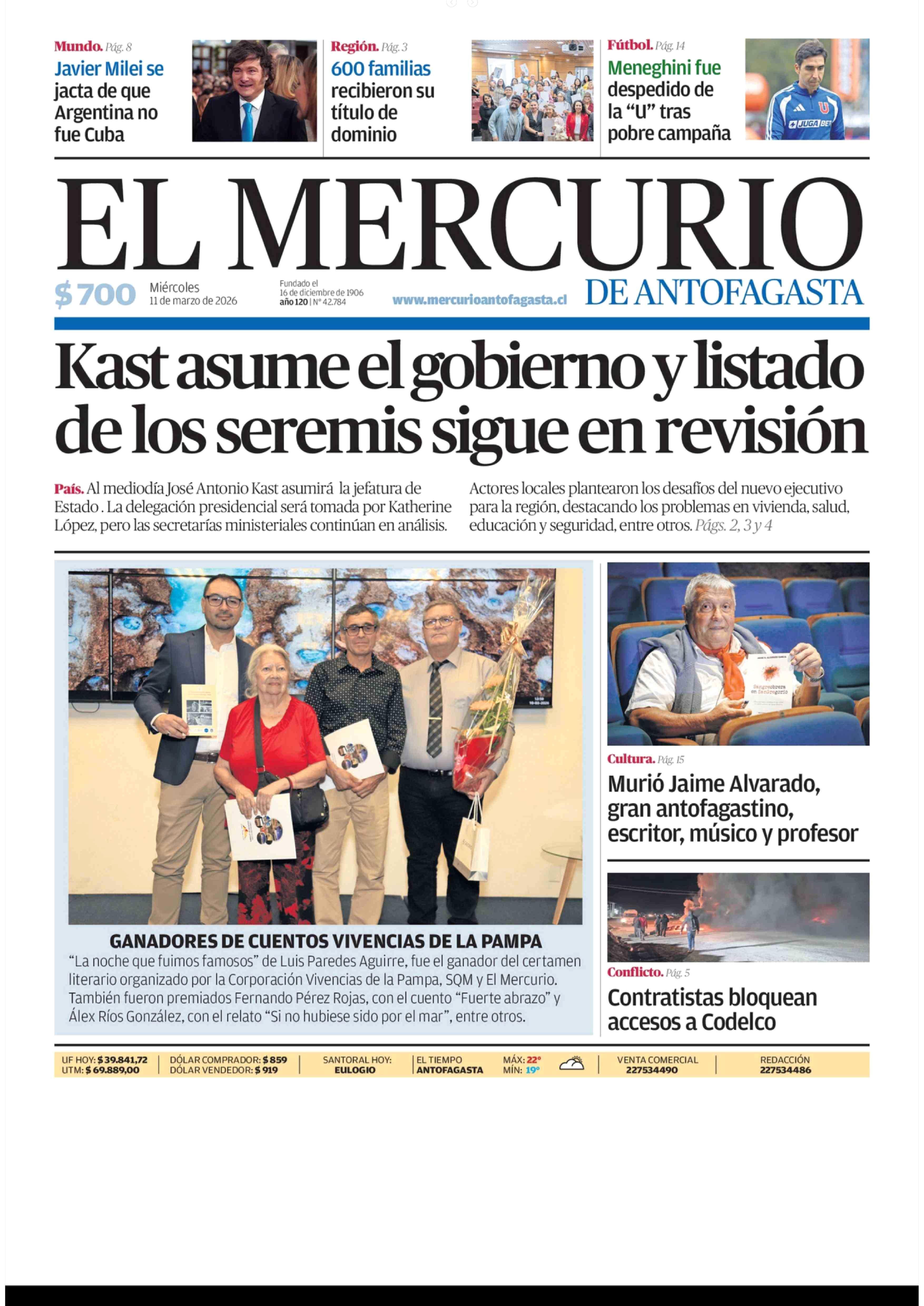 Fecha: 11-03-2026 Sector: Portada Región: Región de Antofagasta