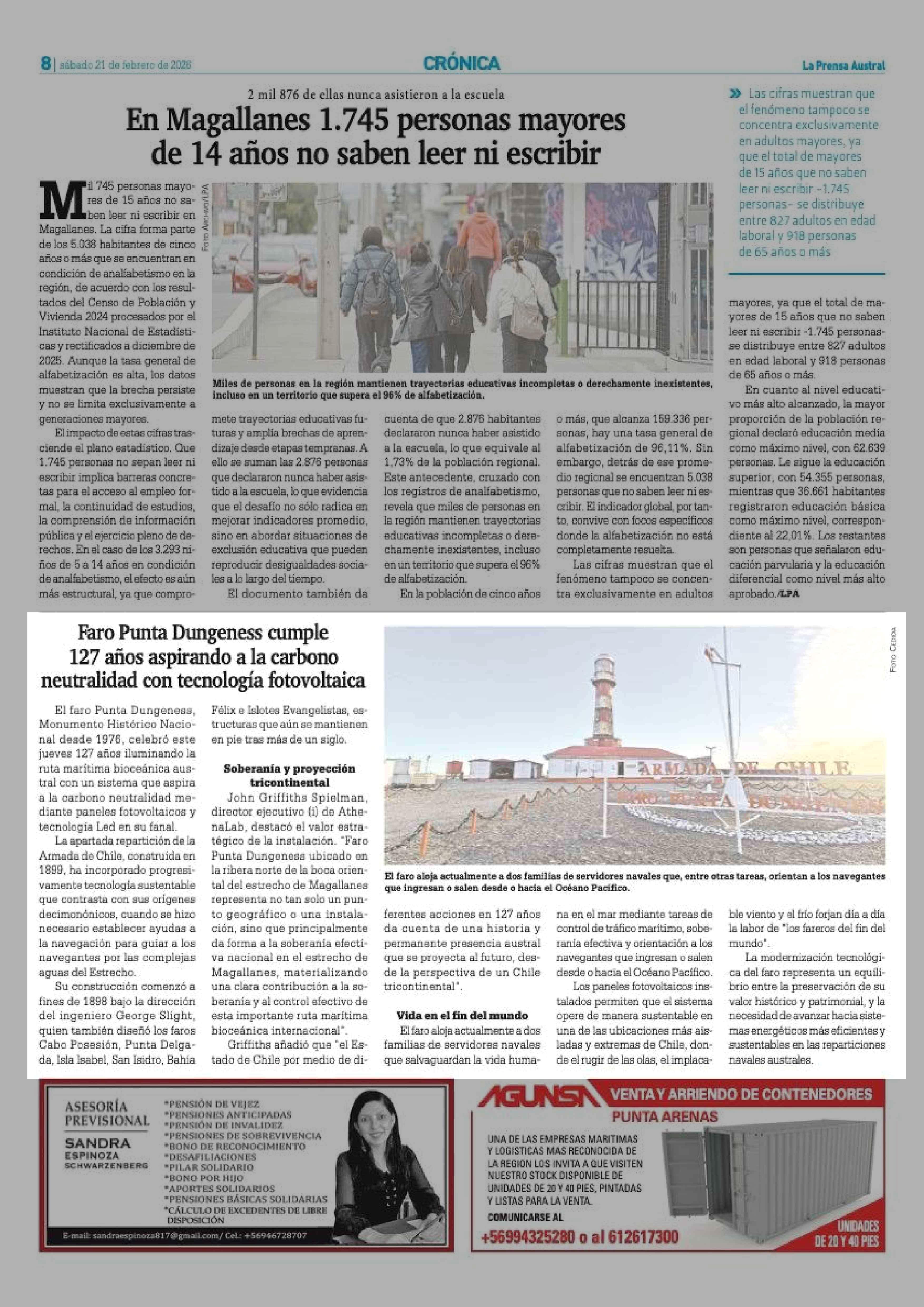 Fecha: 21-02-2026 Sector: Noticia general Región: Región de Magallanes y de la Antártica Chilena