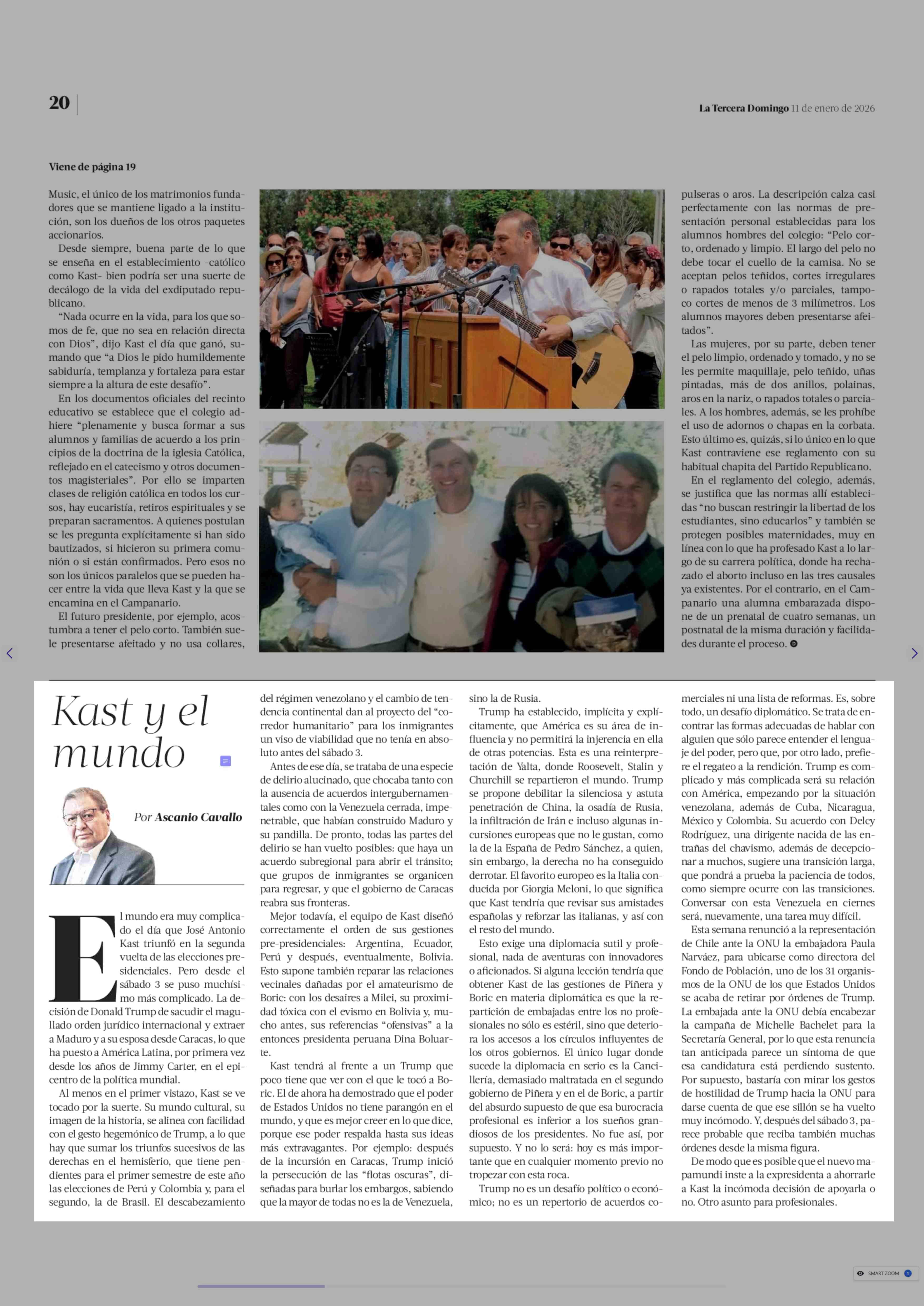 Columnas de Opinión: Kast y el mundo 11-01-2026 La Tercera |