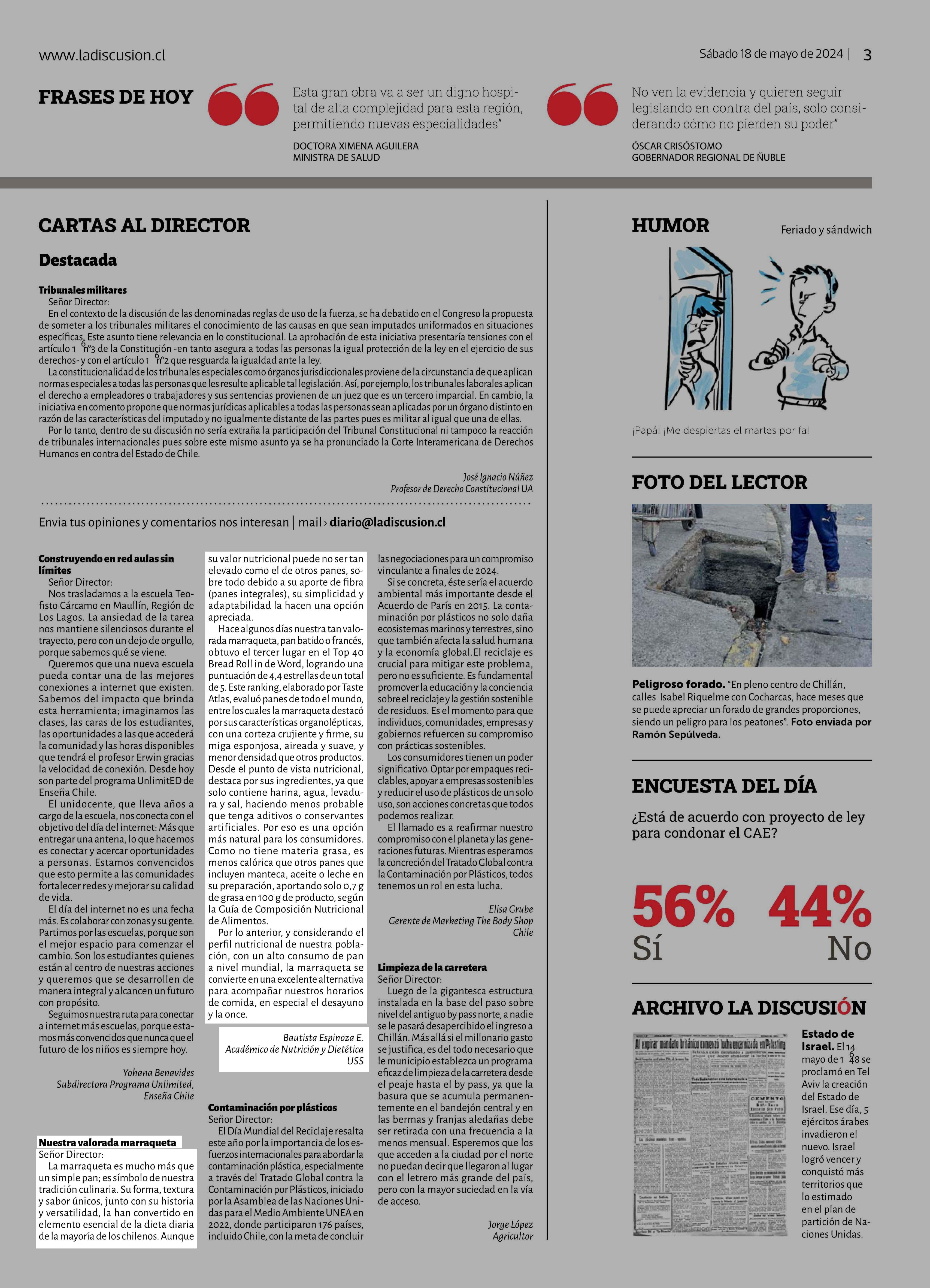 | Fecha: | 18-05-2024 | Sector: | Opinión - Cartas | Región: | Región del Ñuble |