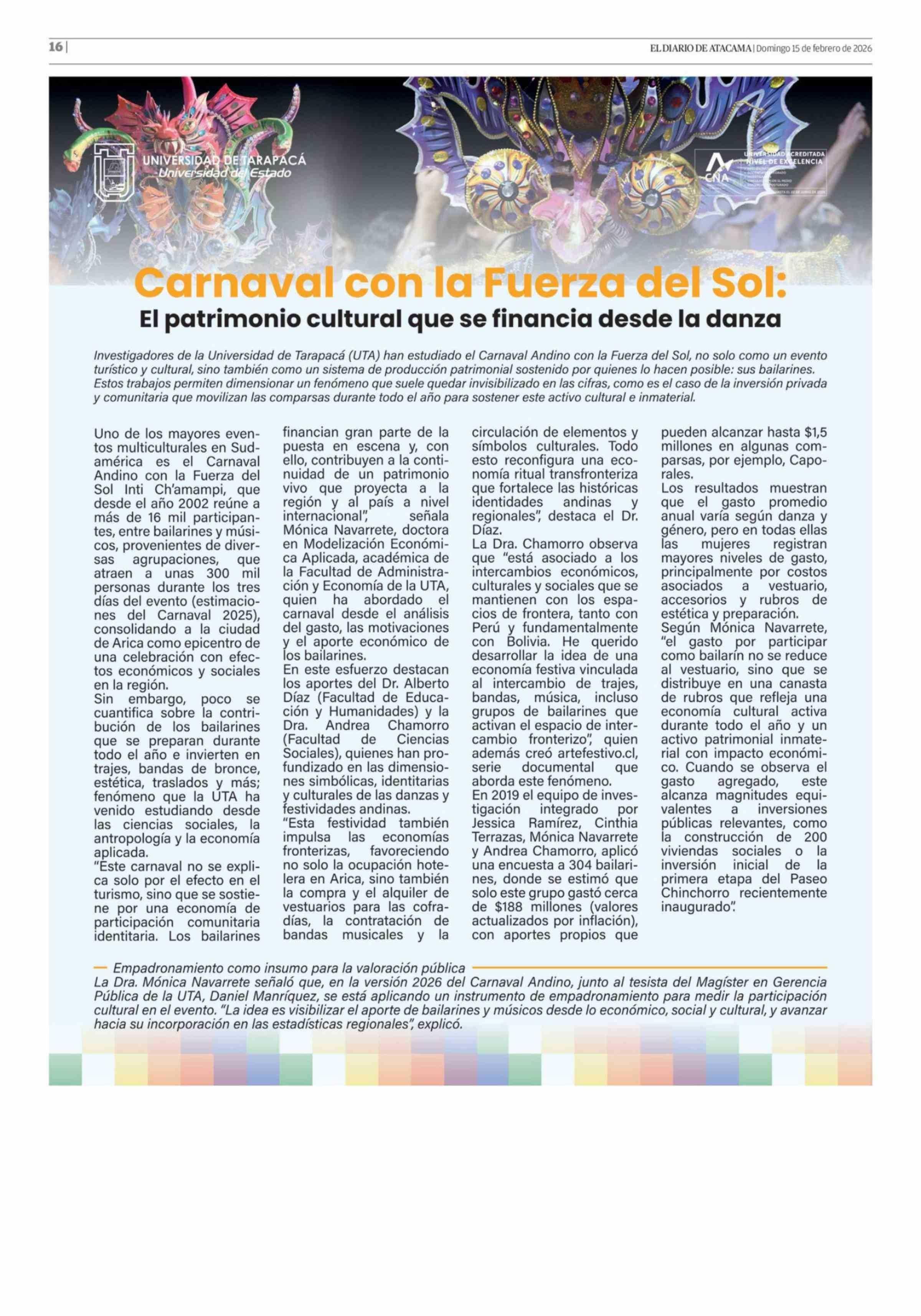 Carnaval con la Fuerza del Sol: 15-02-2026 El Diario de Atacama |