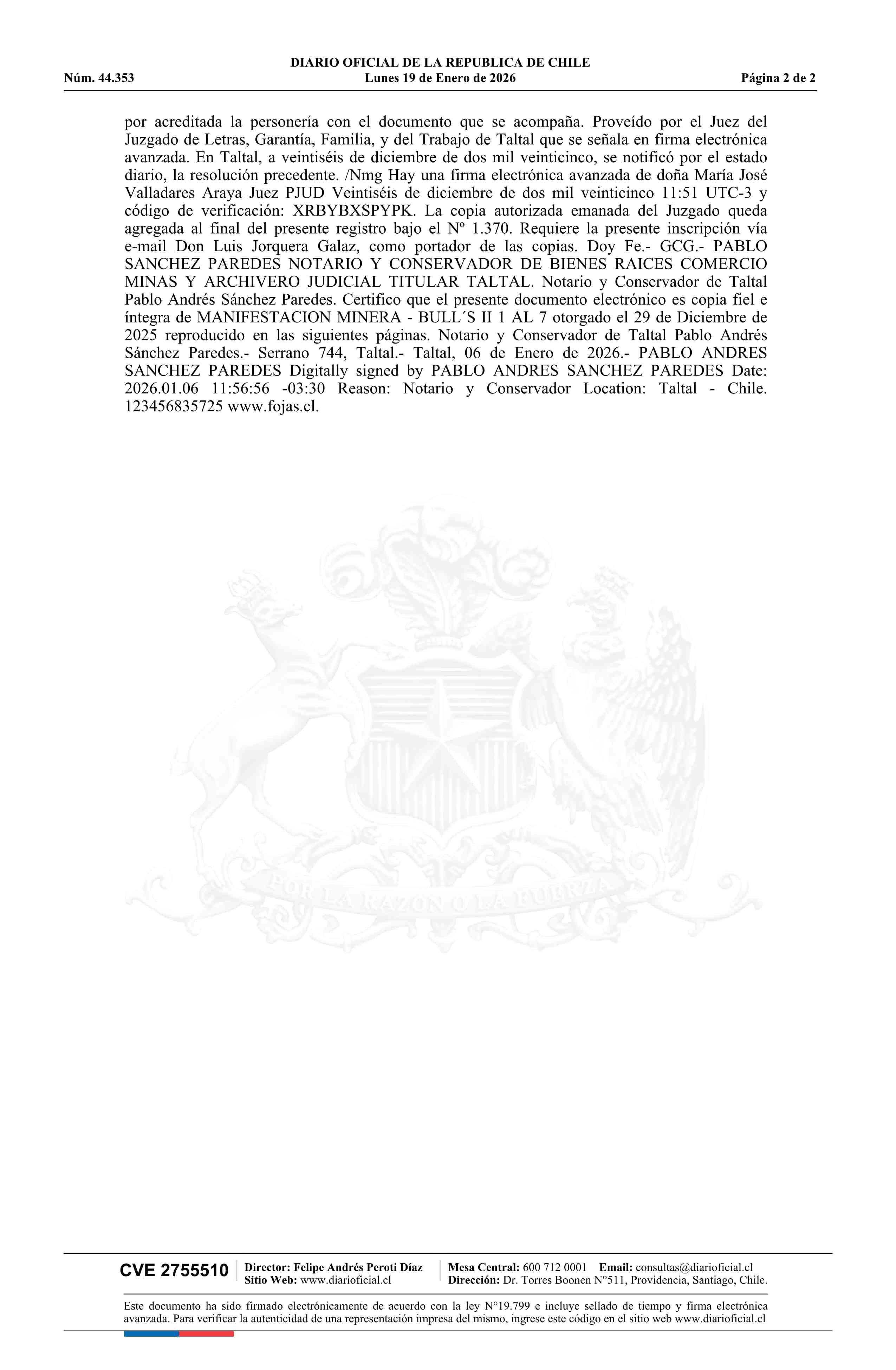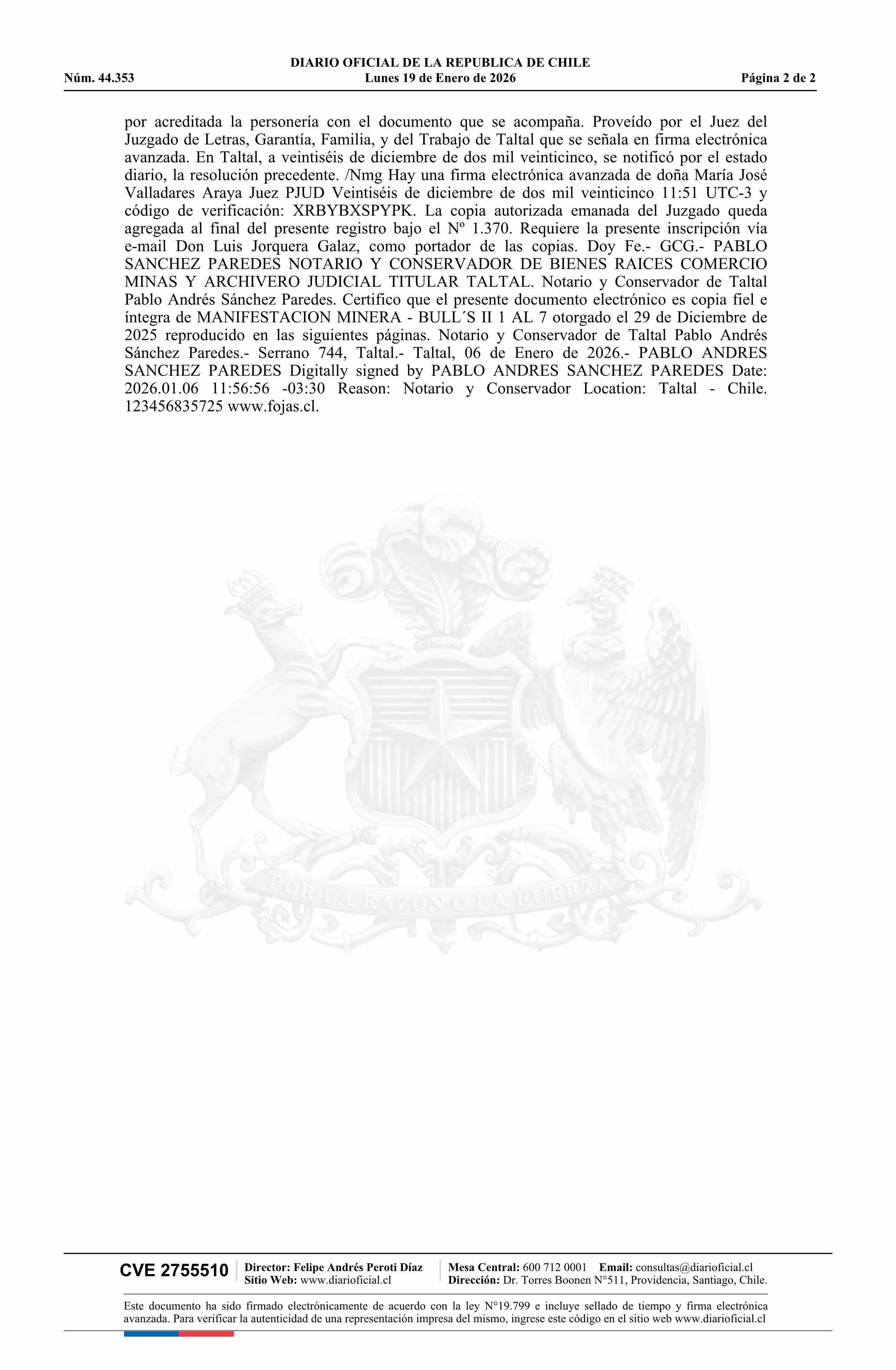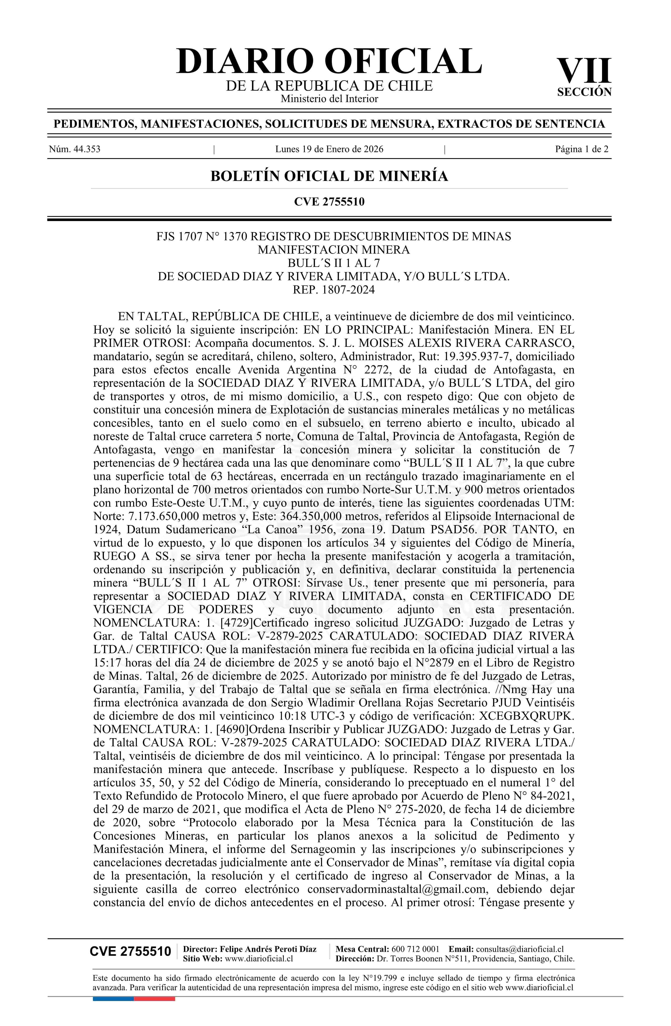 19-01-2026 DIARIO OFICIAL CHILE - BOLETÍN OFICIAL DE MINERÍA
