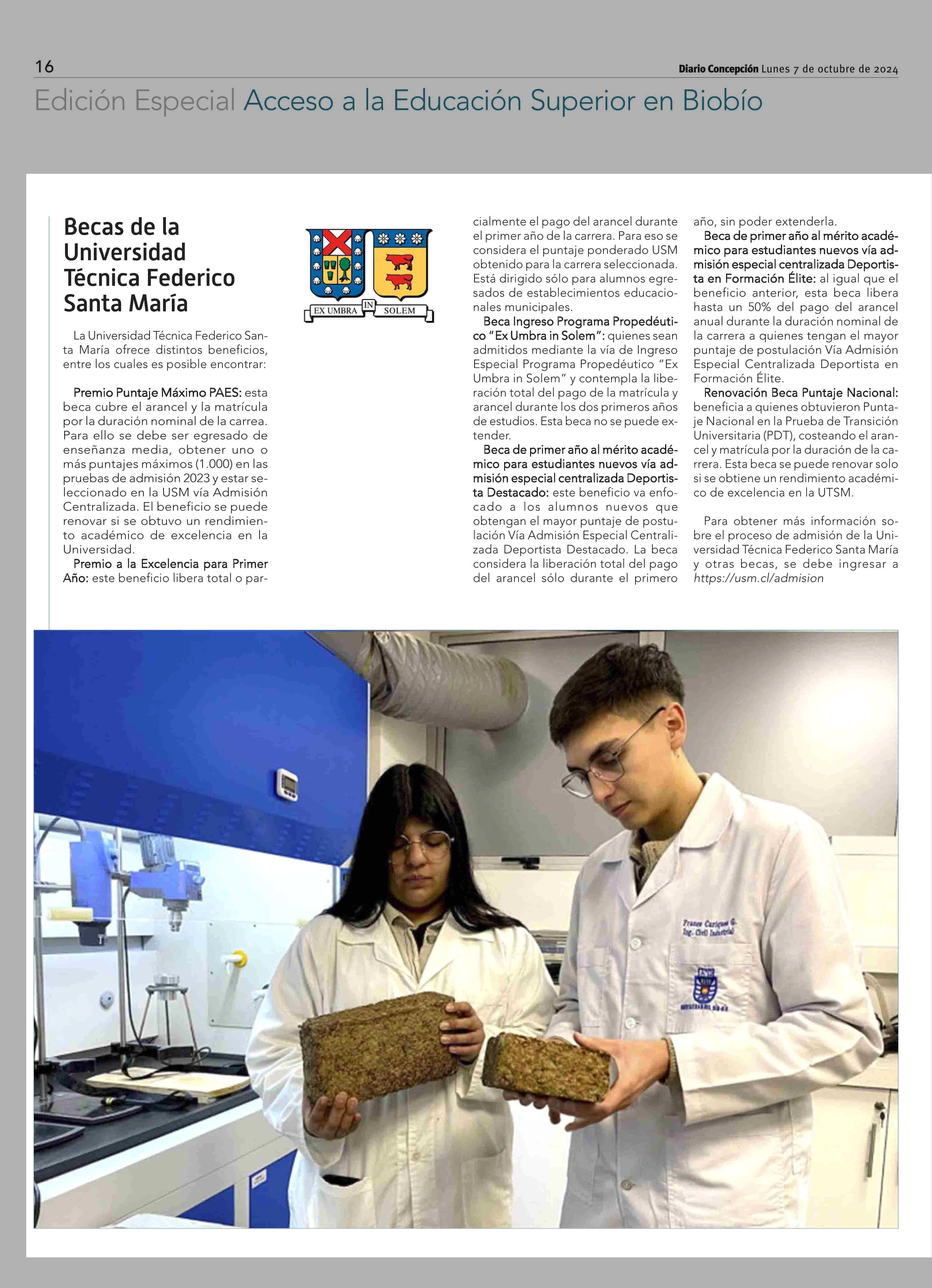 Becas de la Universidad Técnica Federico Santa María 07-10-2024 Diario Concepción |