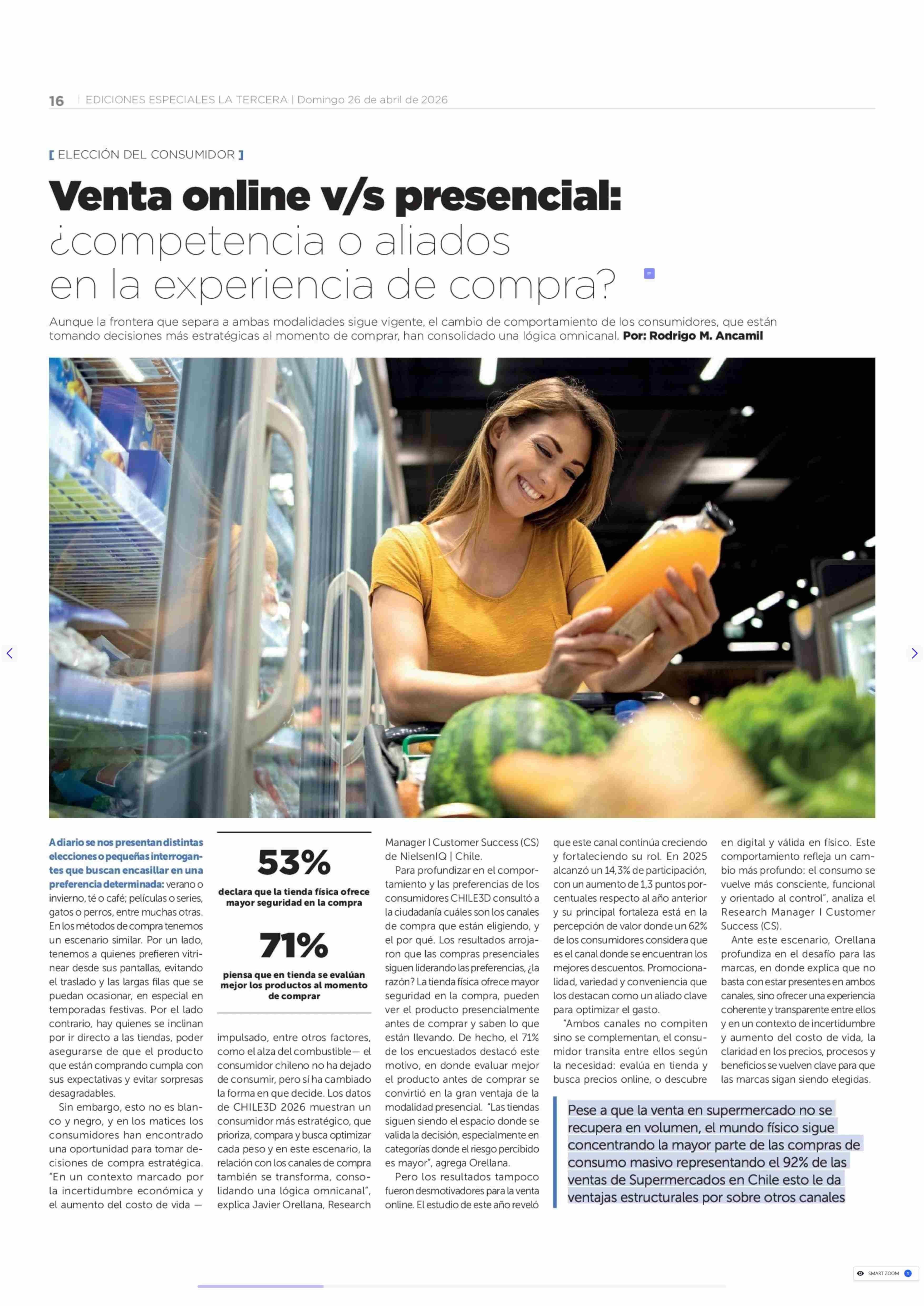 Venta online v/s presencial: ¿competencia o alados en la experiencia de compra” 26-04-2026 La Tercera |