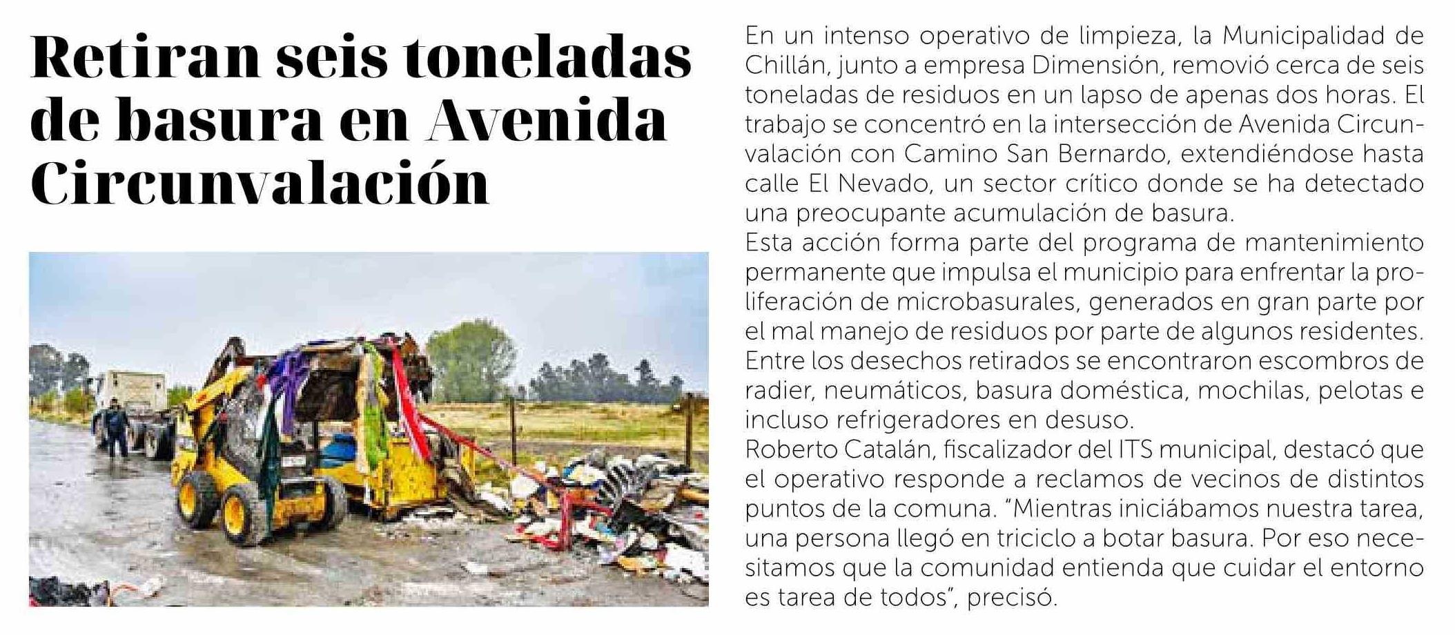 | Título: | Retiran seis toneladas de basura en Avenida Circunvalación |