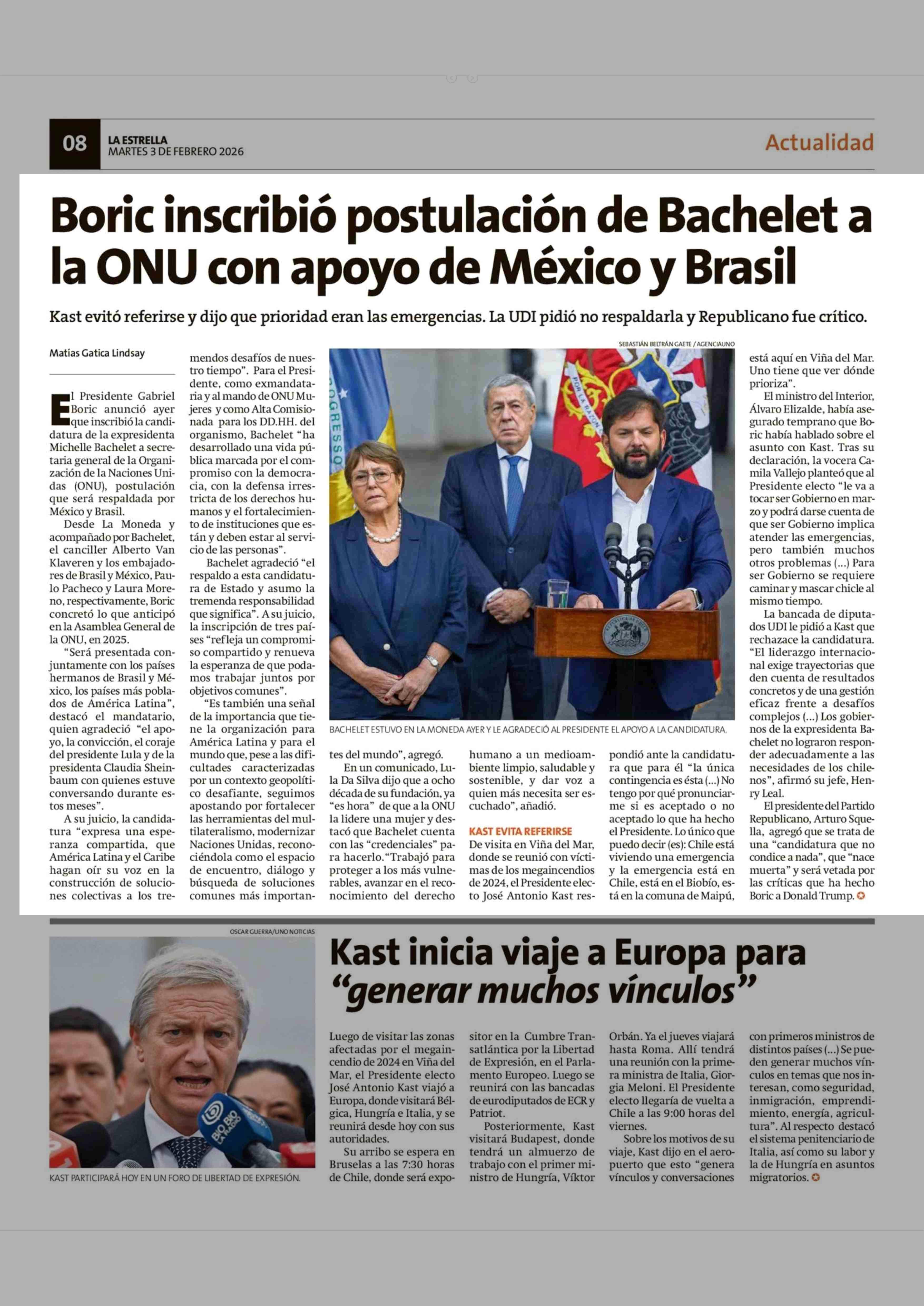 Título: Boric inscribió postulación de Bachelet a la ONU con apoyo de México y Brasil