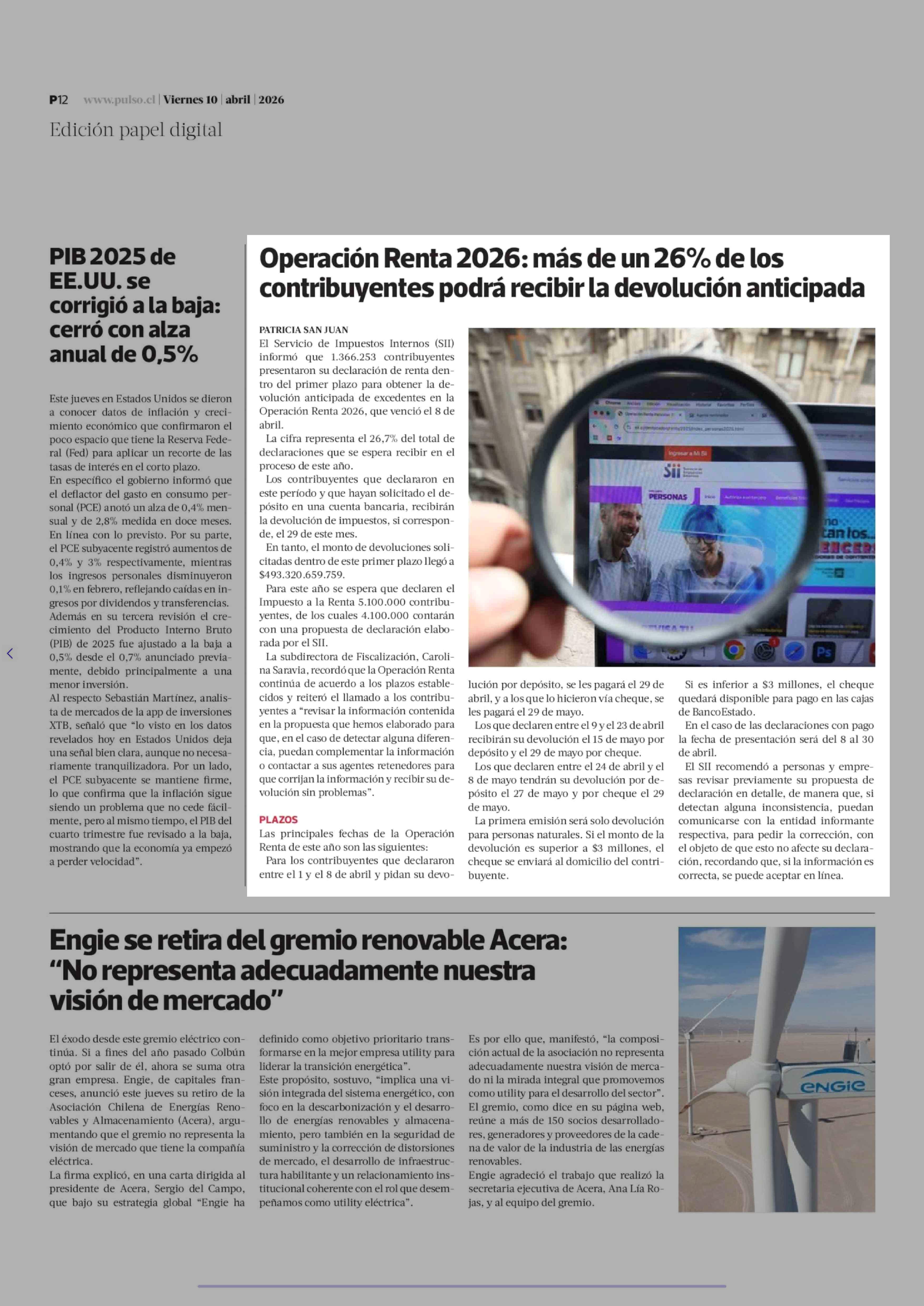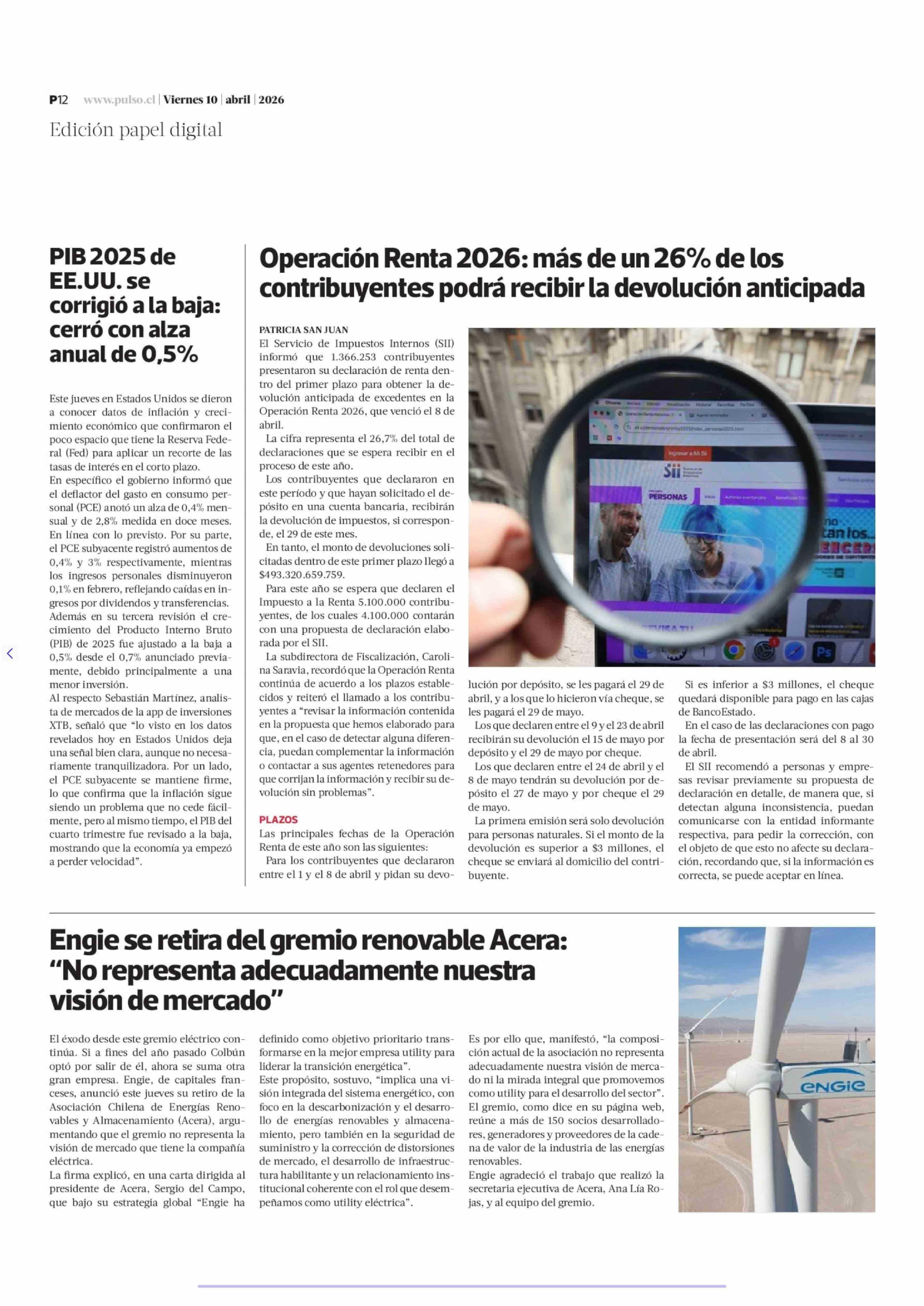 Fuente: La Tercera (La Tercera - Pulso) Página(s): 12