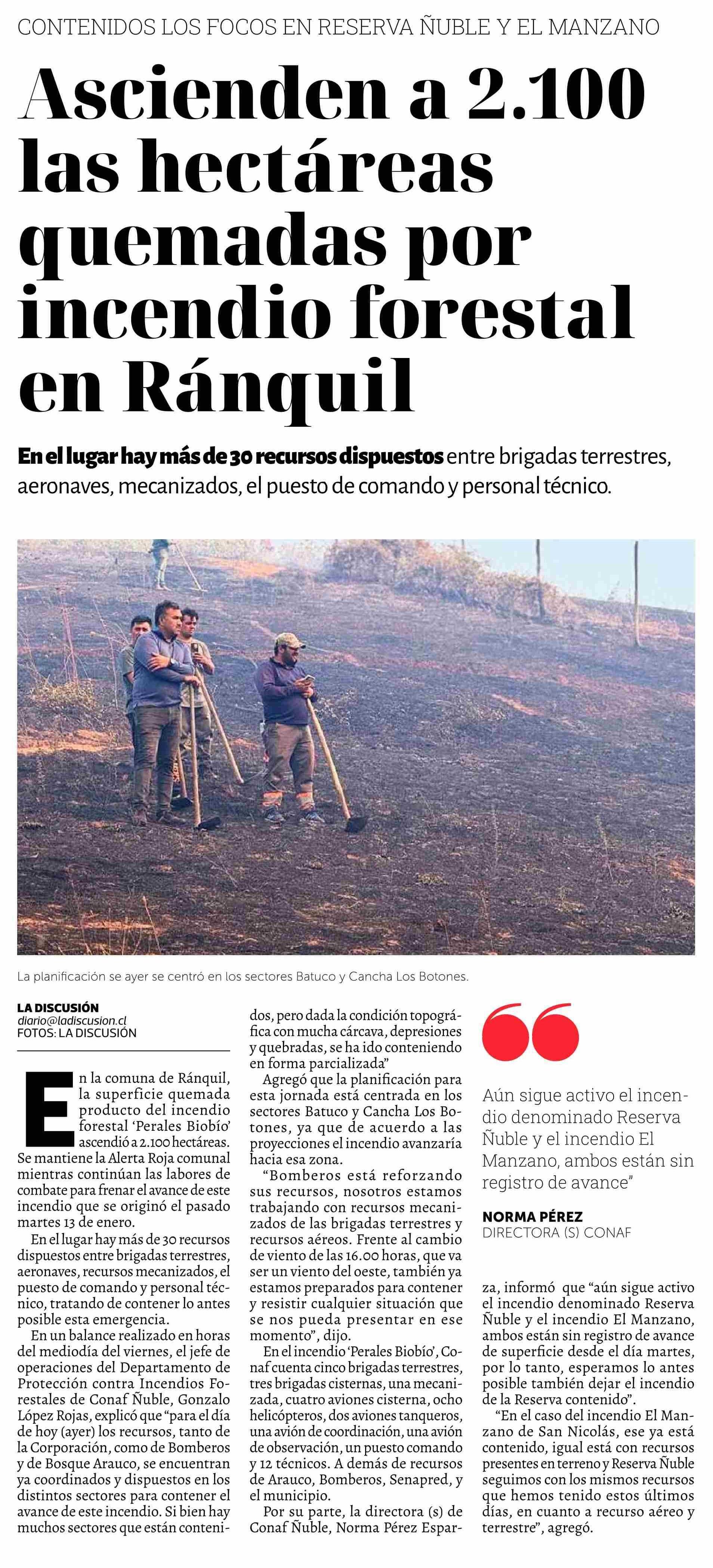 Título: Ascienden a 2.100 las hectáreas quemadas por incendio forestal en Ránquil
