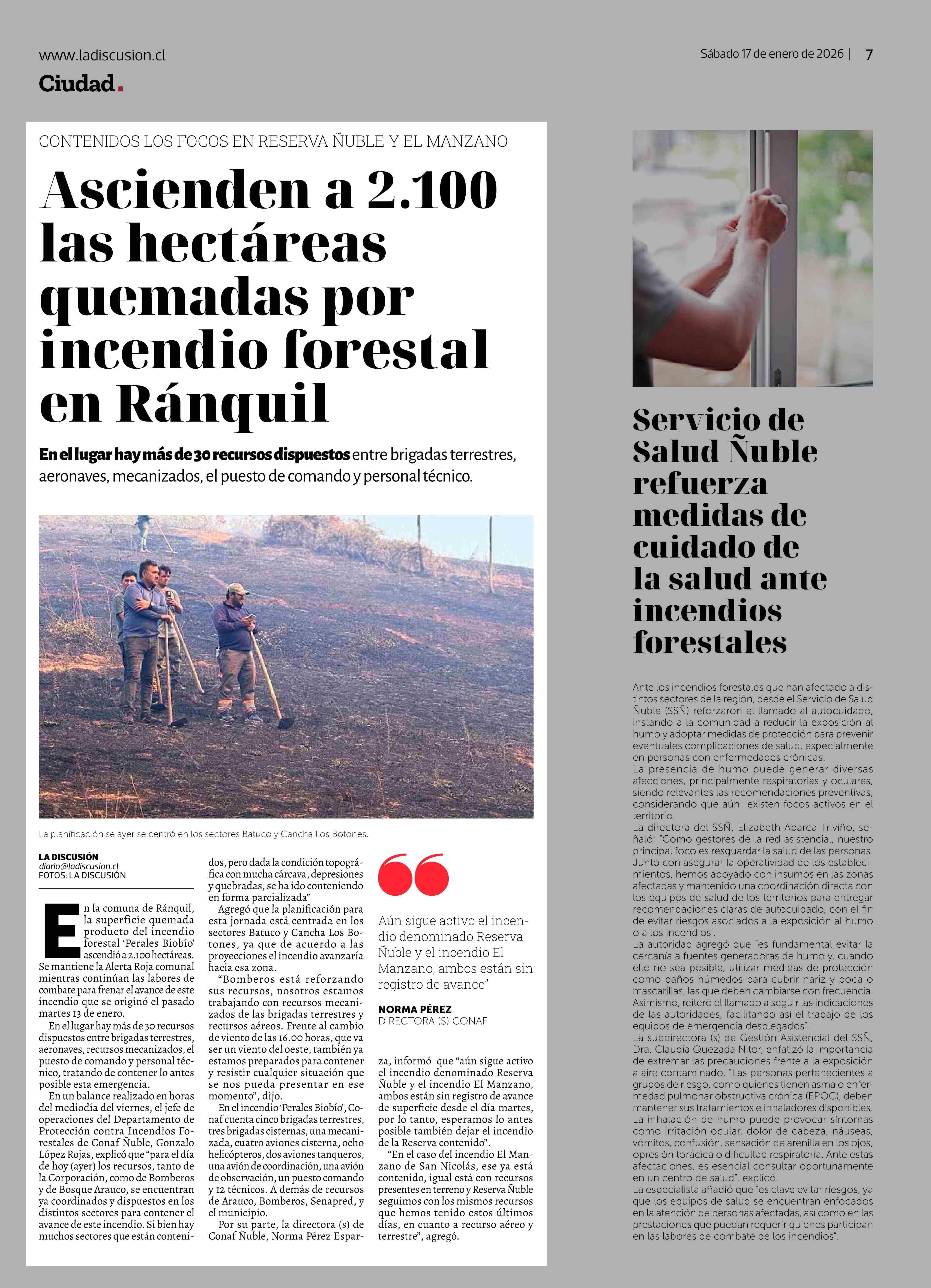 Fecha: 17-01-2026 Sector: Noticia general Región: Región del Ñuble