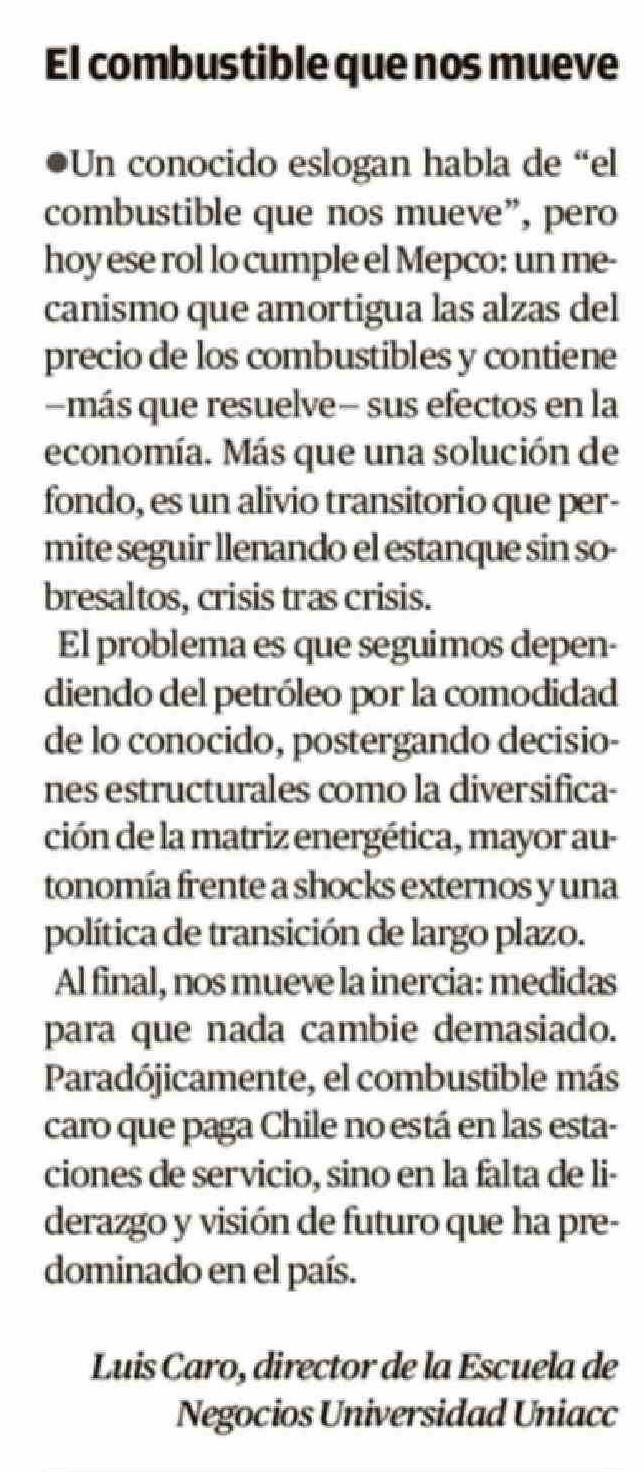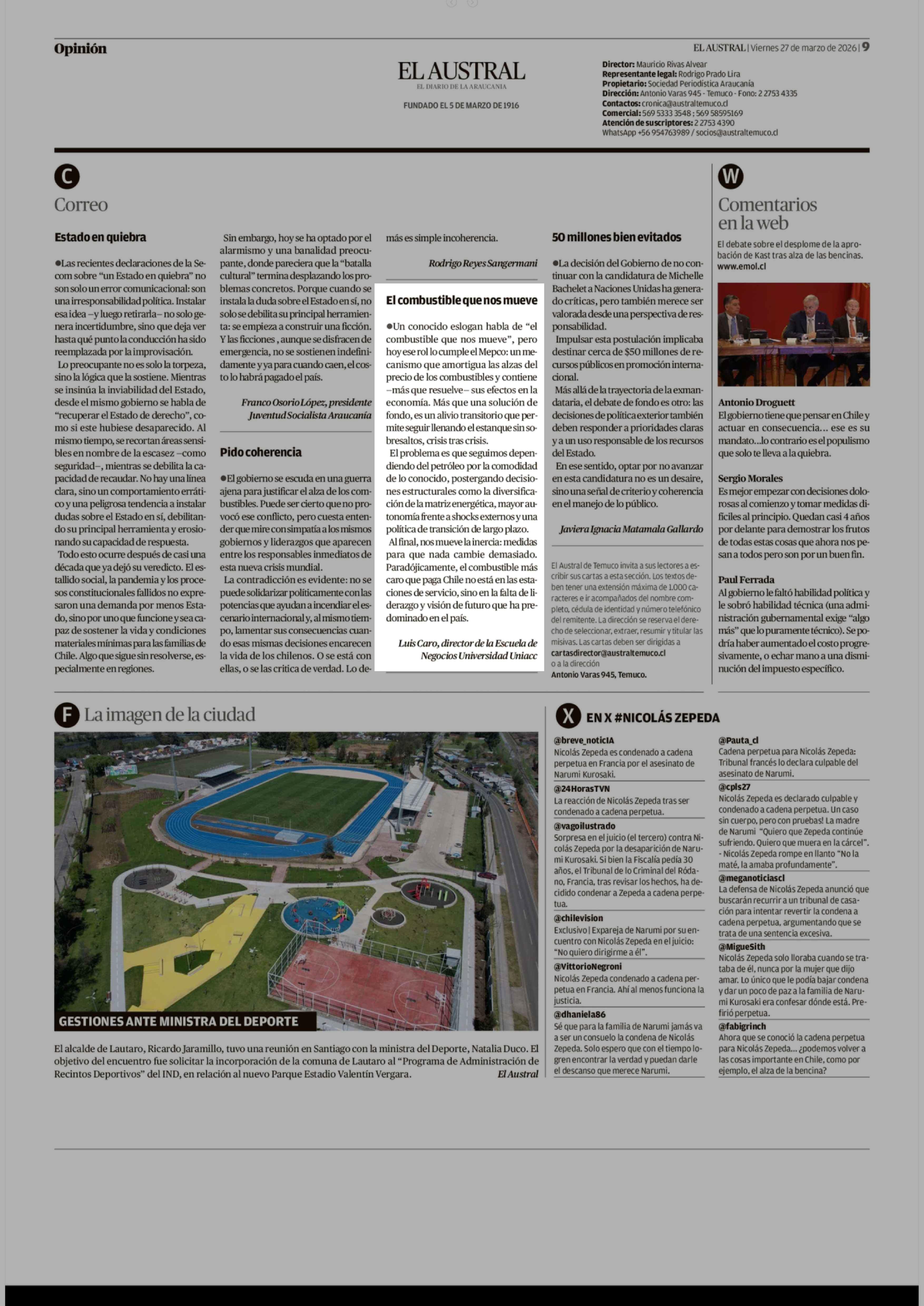 Cartas: El combustible que nos mueve 27-03-2026 El Austral de la Araucanía |