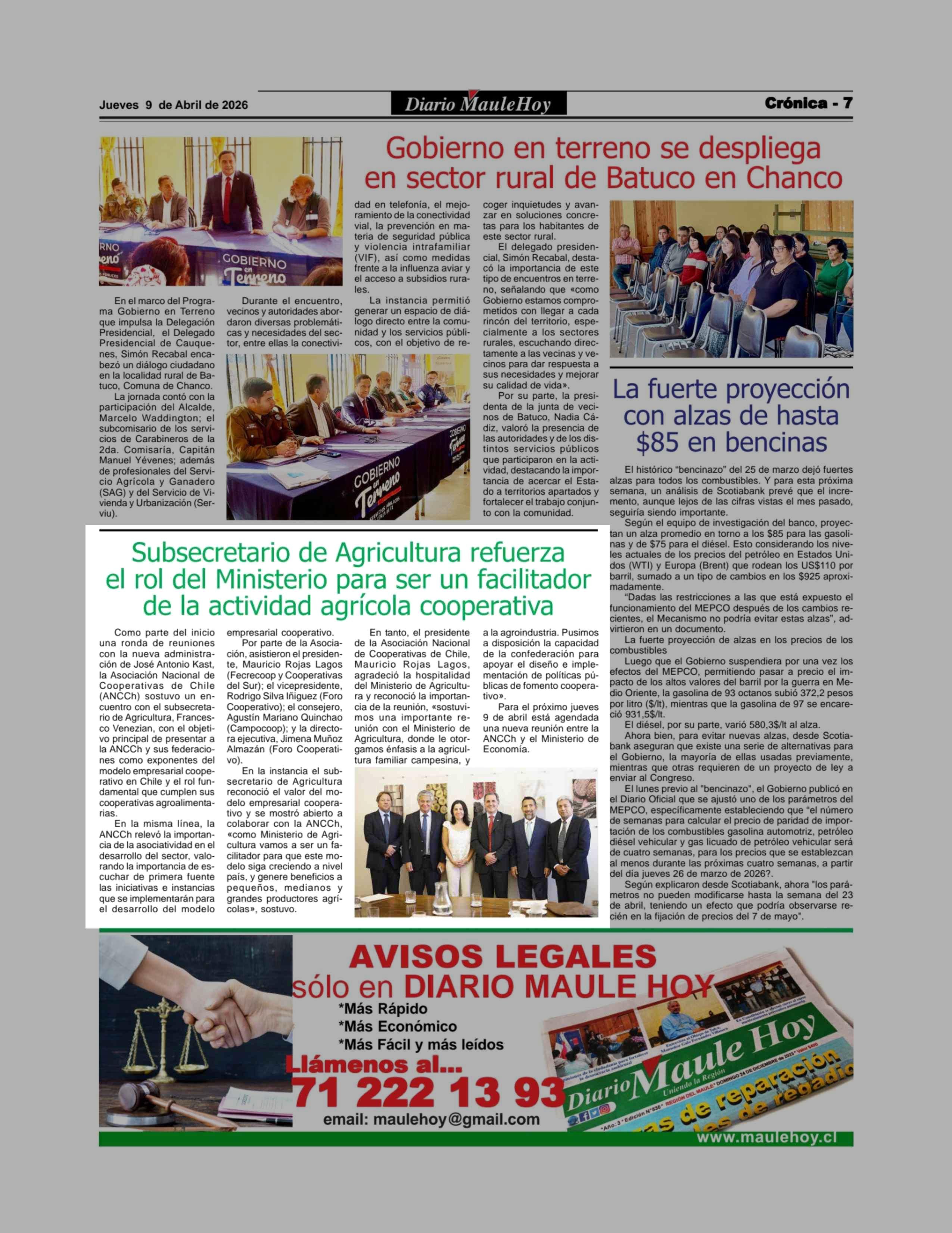 Subsecretario de Agricultura refuerza el rol del Ministerio para ser un facilitador de la actividad agrícola cooperativa 09-04-2026 Maule Hoy |