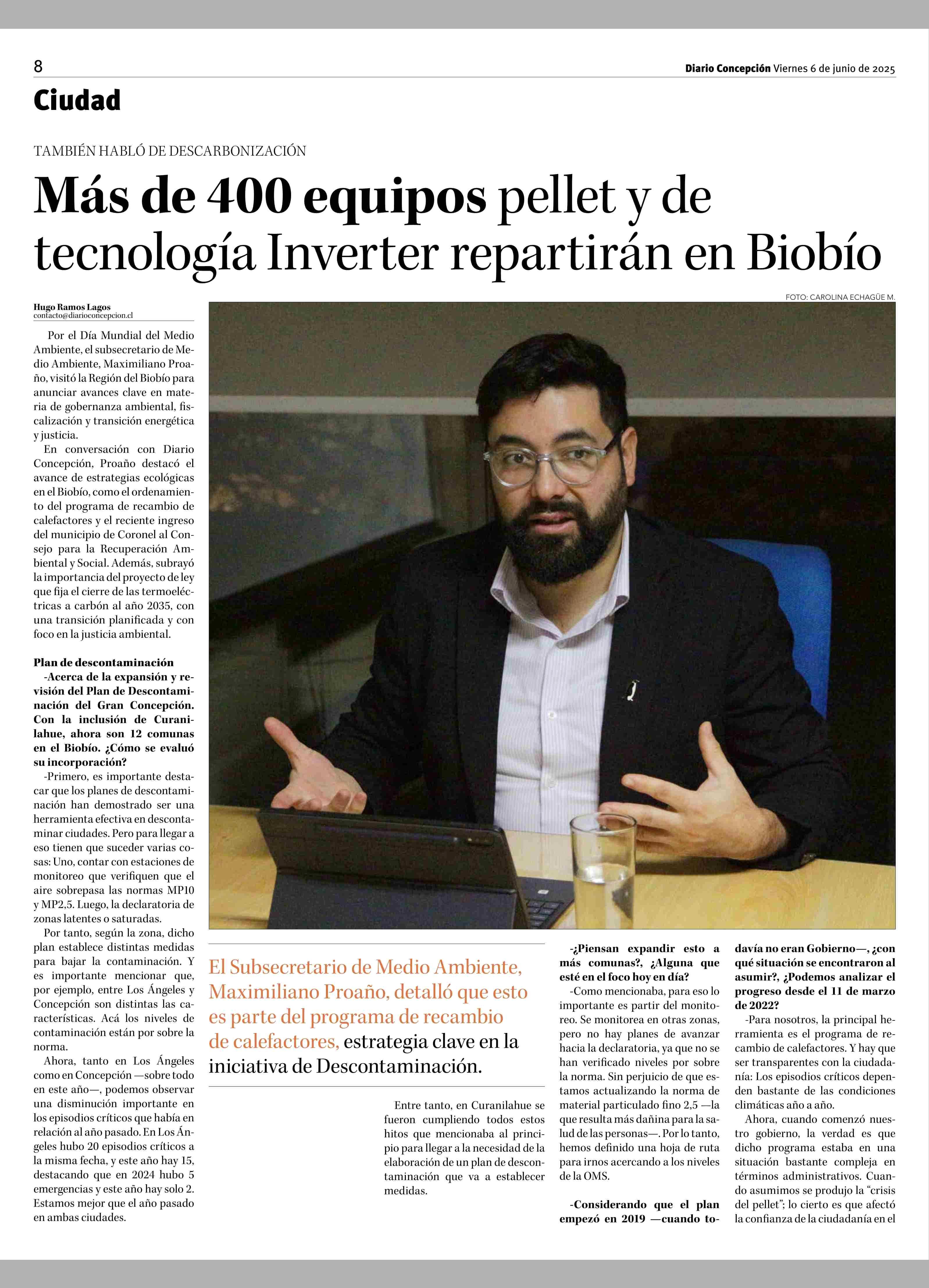 Más de 400 equipos pellet y de tecnología Inverter repartirán en Biobío 06-06-2025 Diario Concepción |