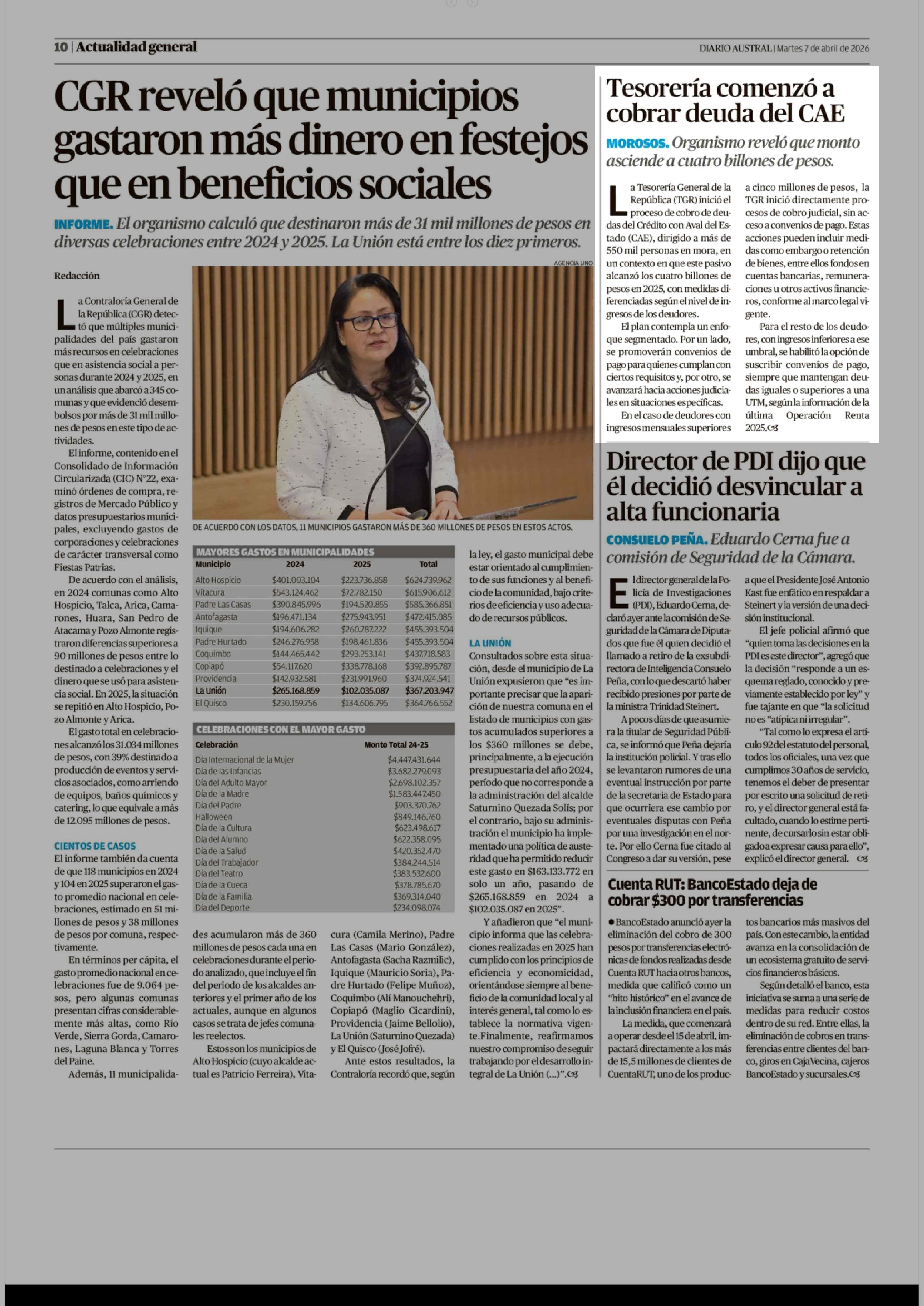 Tesorería comenzó a cobrar deuda del CAE 07-04-2026 Diario Austral Región de Los Ríos |