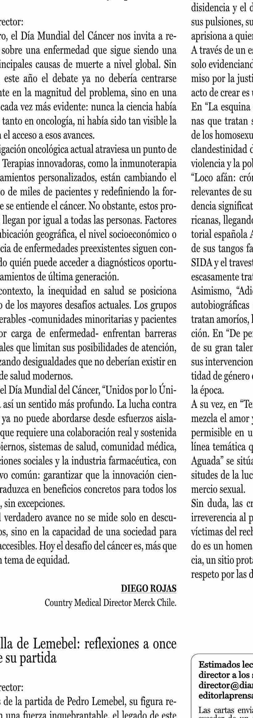 Cartas: Cáncer: el desafío en acceso y equidad 07-02-2026 La Prensa de Curicó |