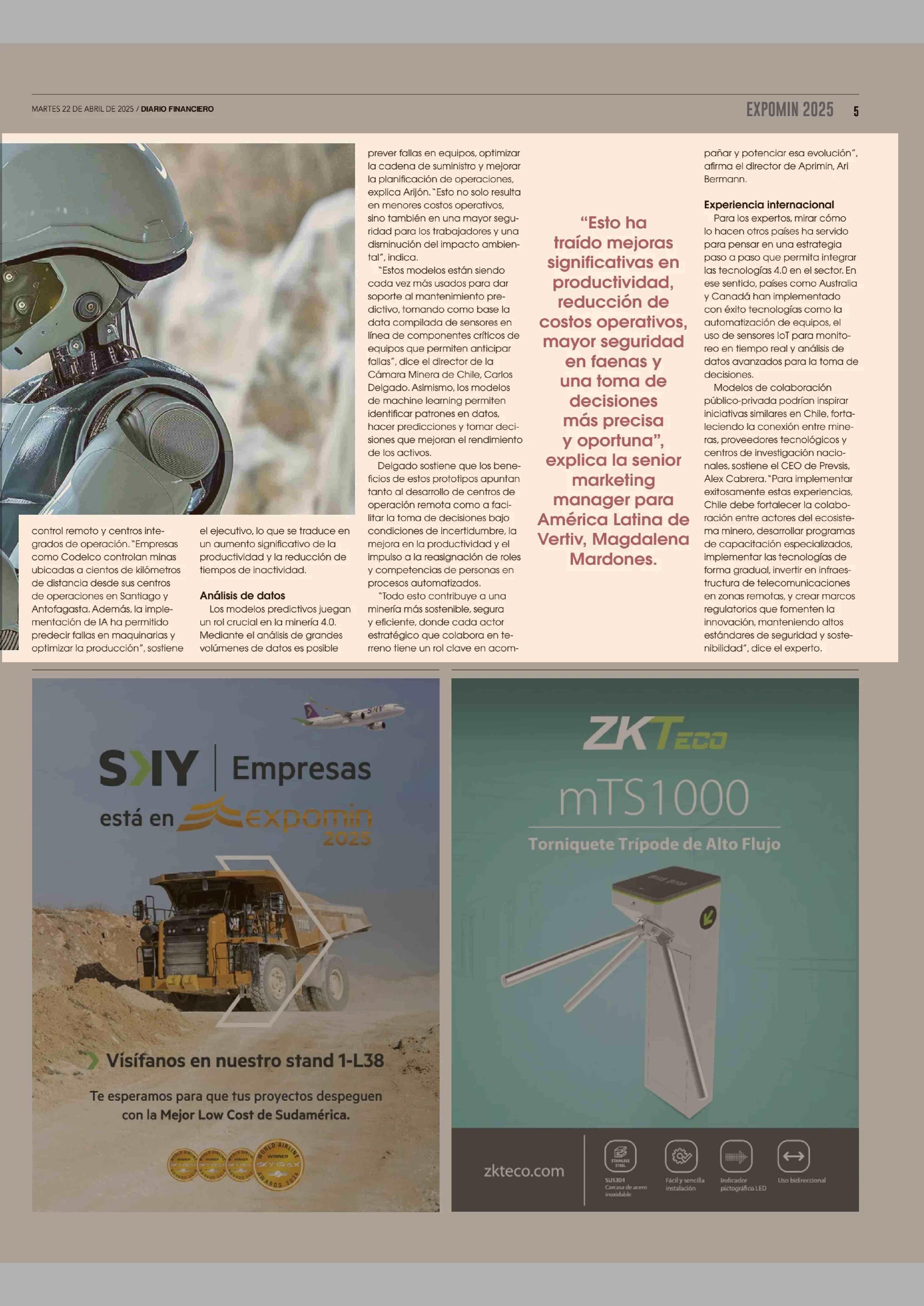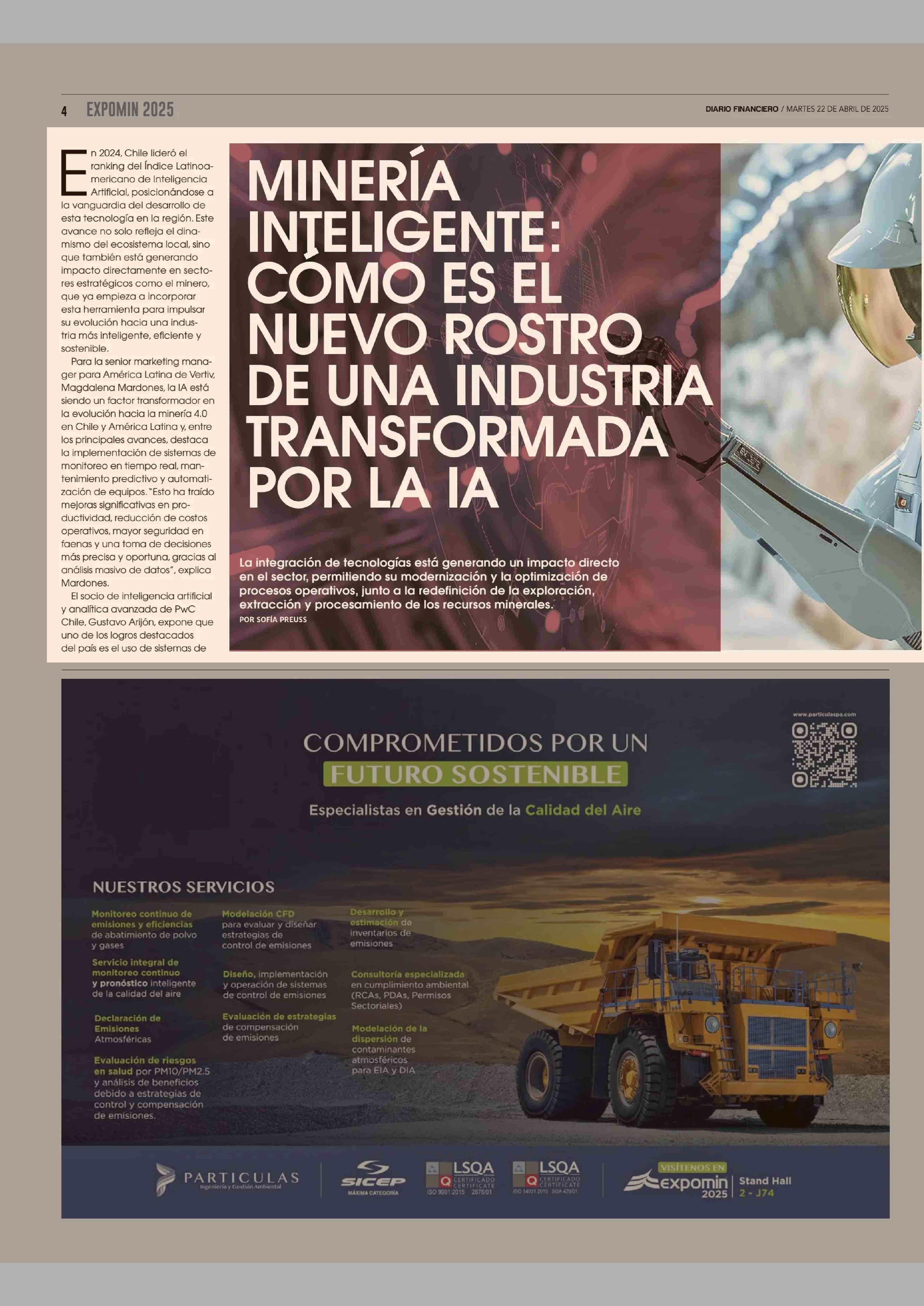 MINERÍA INTELIGENTE COMO ES EL NUEVO ROSTRO DE UNA INDUSTRIA TRANSFORMADA POR LA IA 22-04-2025 Diario Financiero |