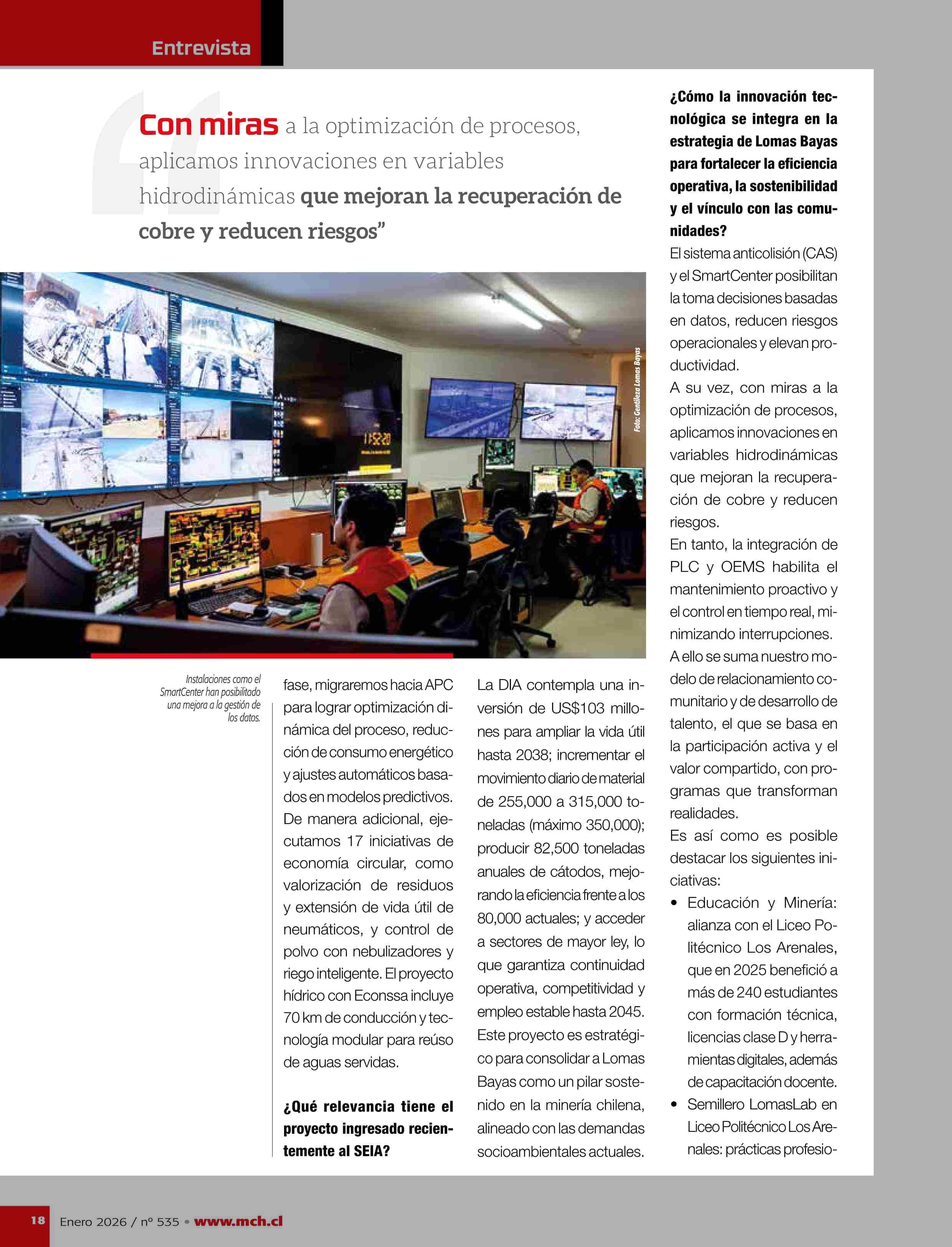 "Operamos con una de las leyes de cobre más bajas del mundo” 23-01-2026 Revista Minería Chilena |