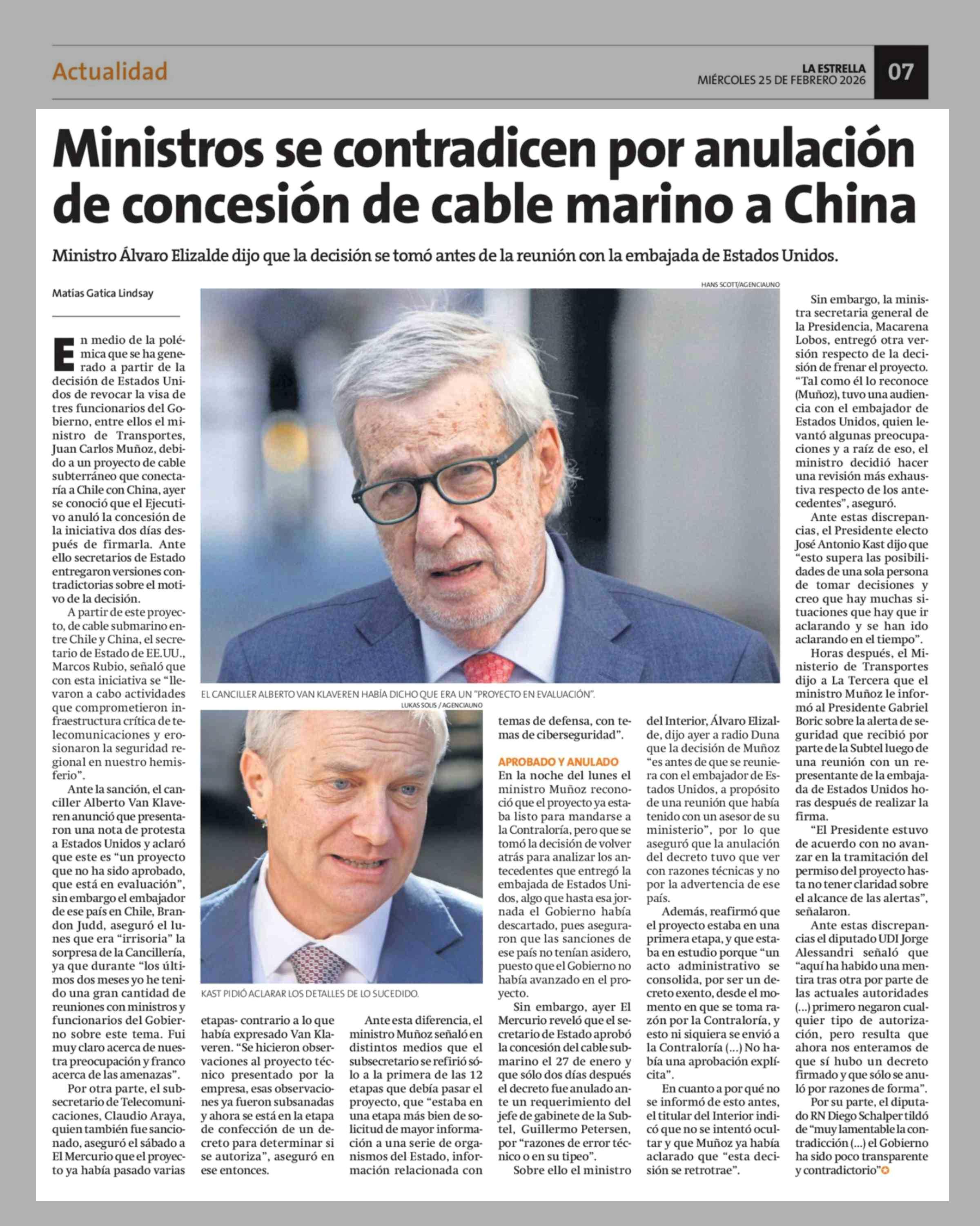 Título: Ministros se contradicen por anulación de concesión de cable marino a China
