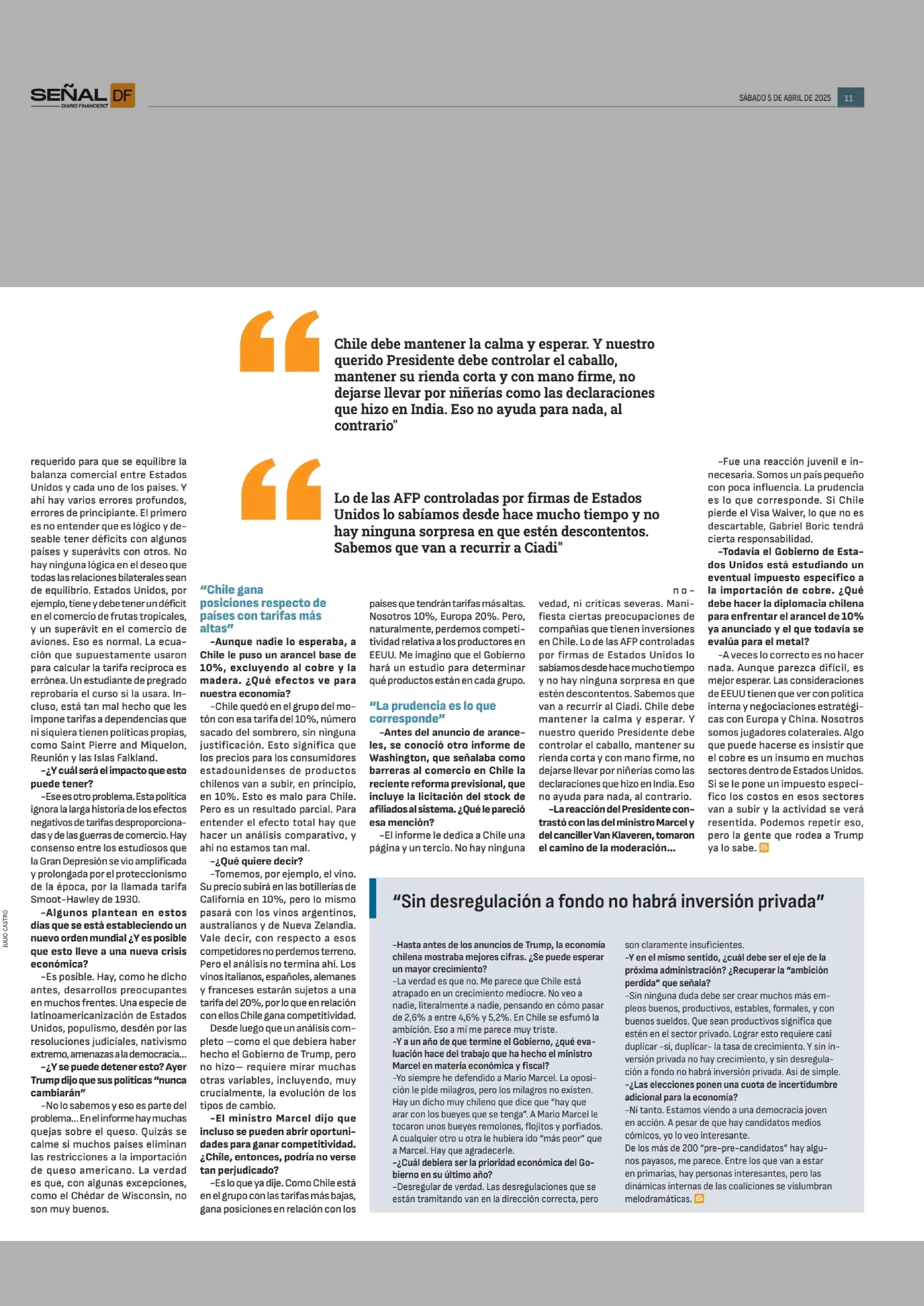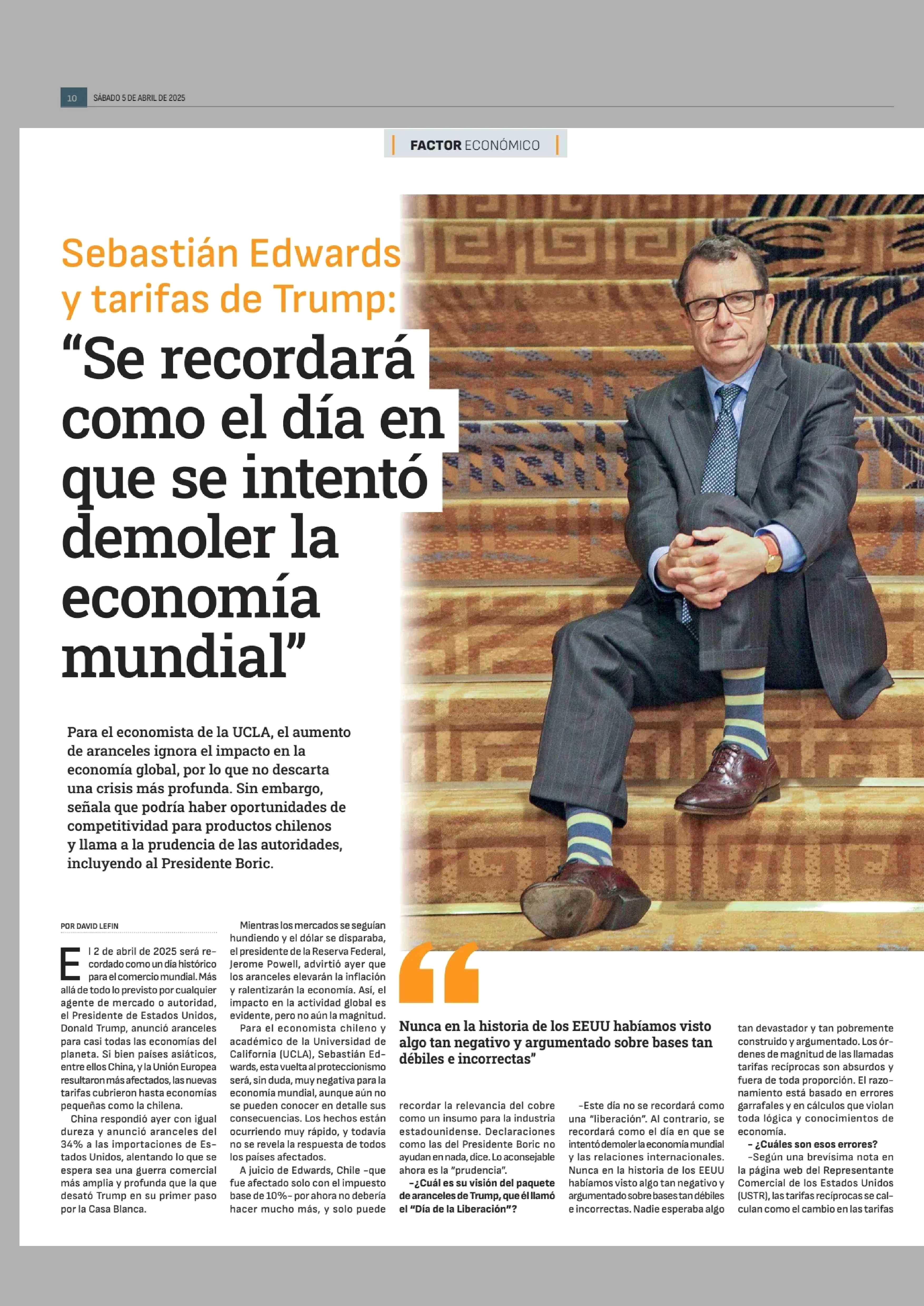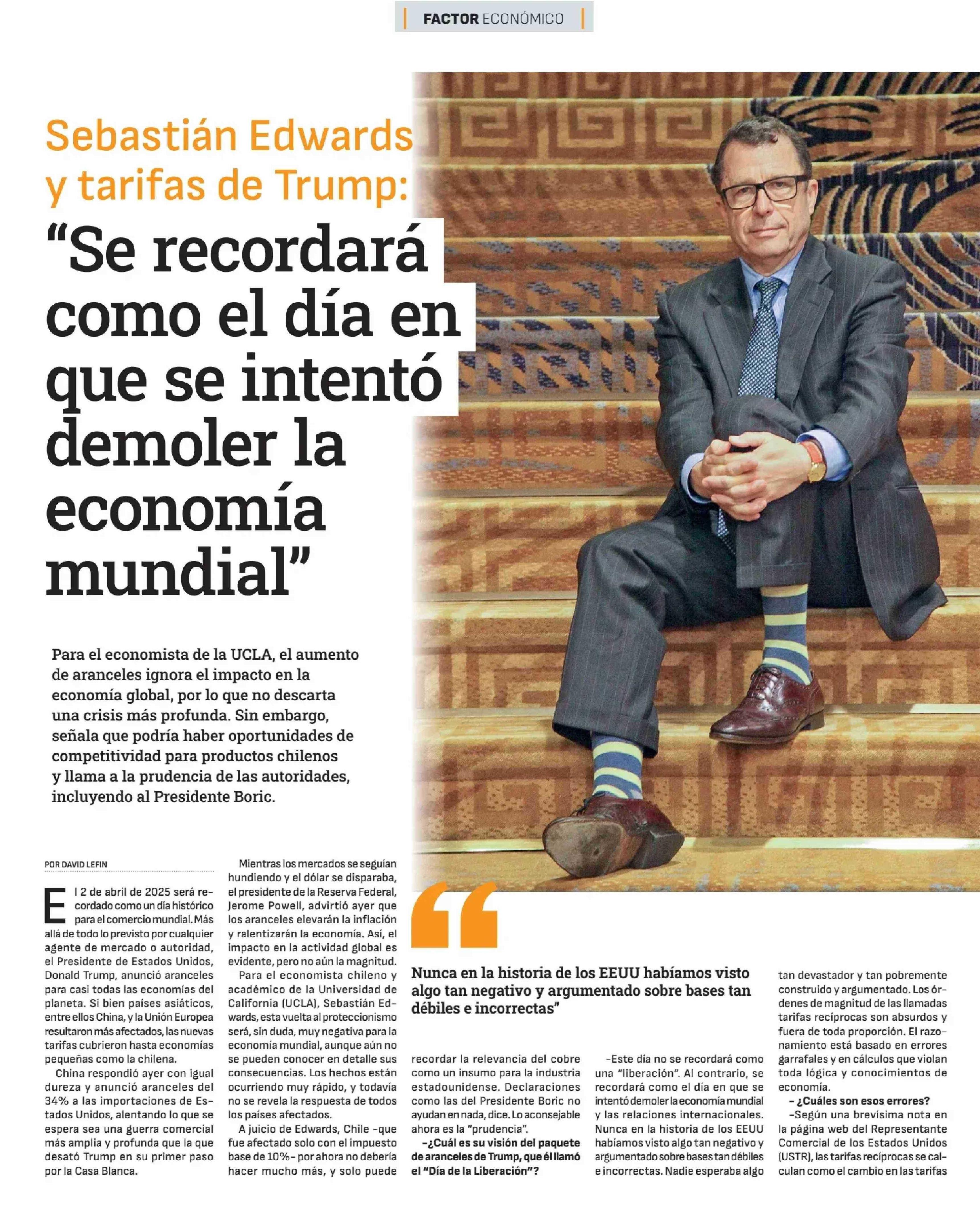 Sebastián Edwards y tarifas de Trump: “Se recordará como el día en que se intentó demoler la economia mundial” 05-04-2025 Diario Financiero |