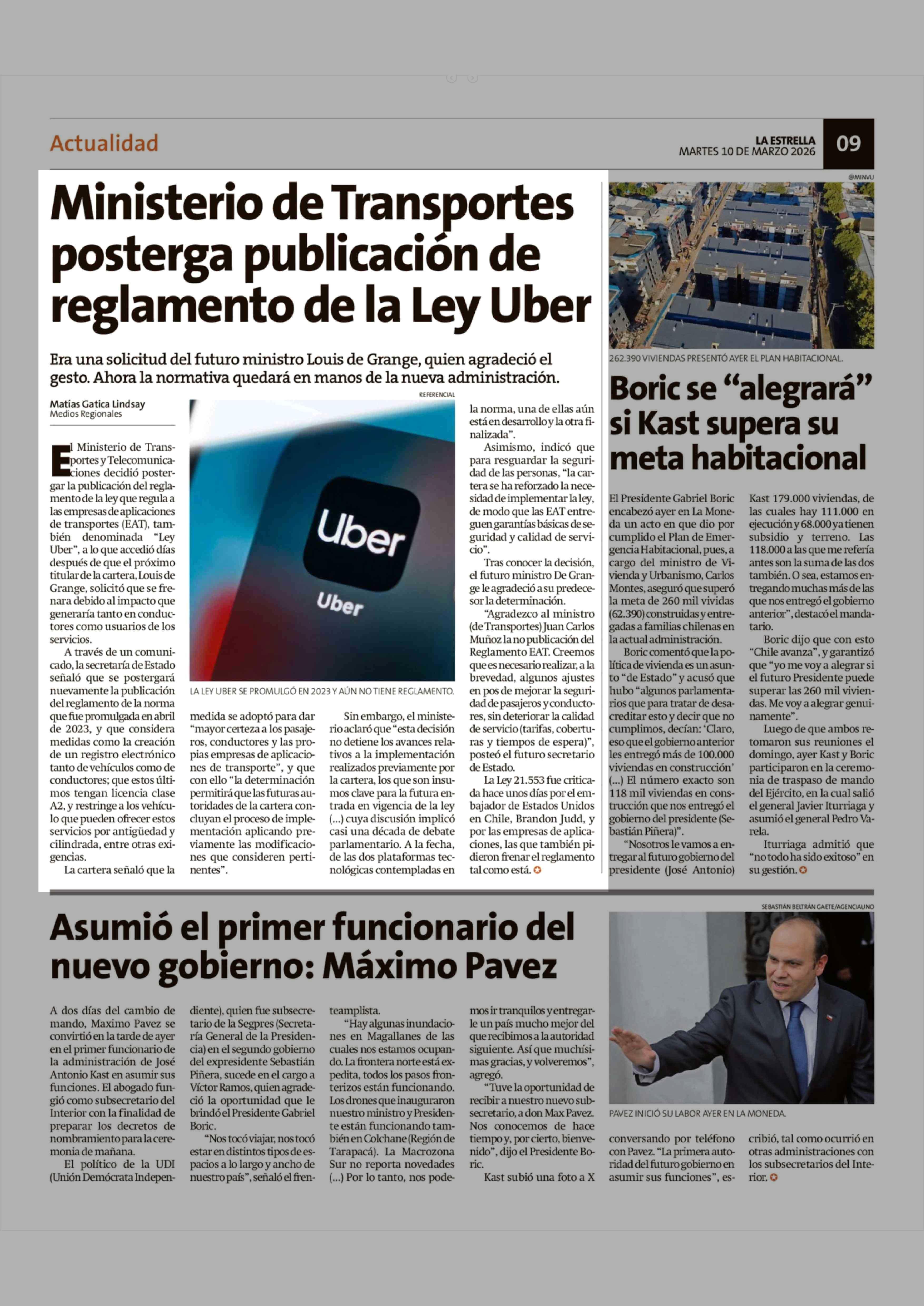 Ministerio de Transportes posterga publicación de reglamento de la Ley Uber 10-03-2026 La Estrella de Chiloé |
