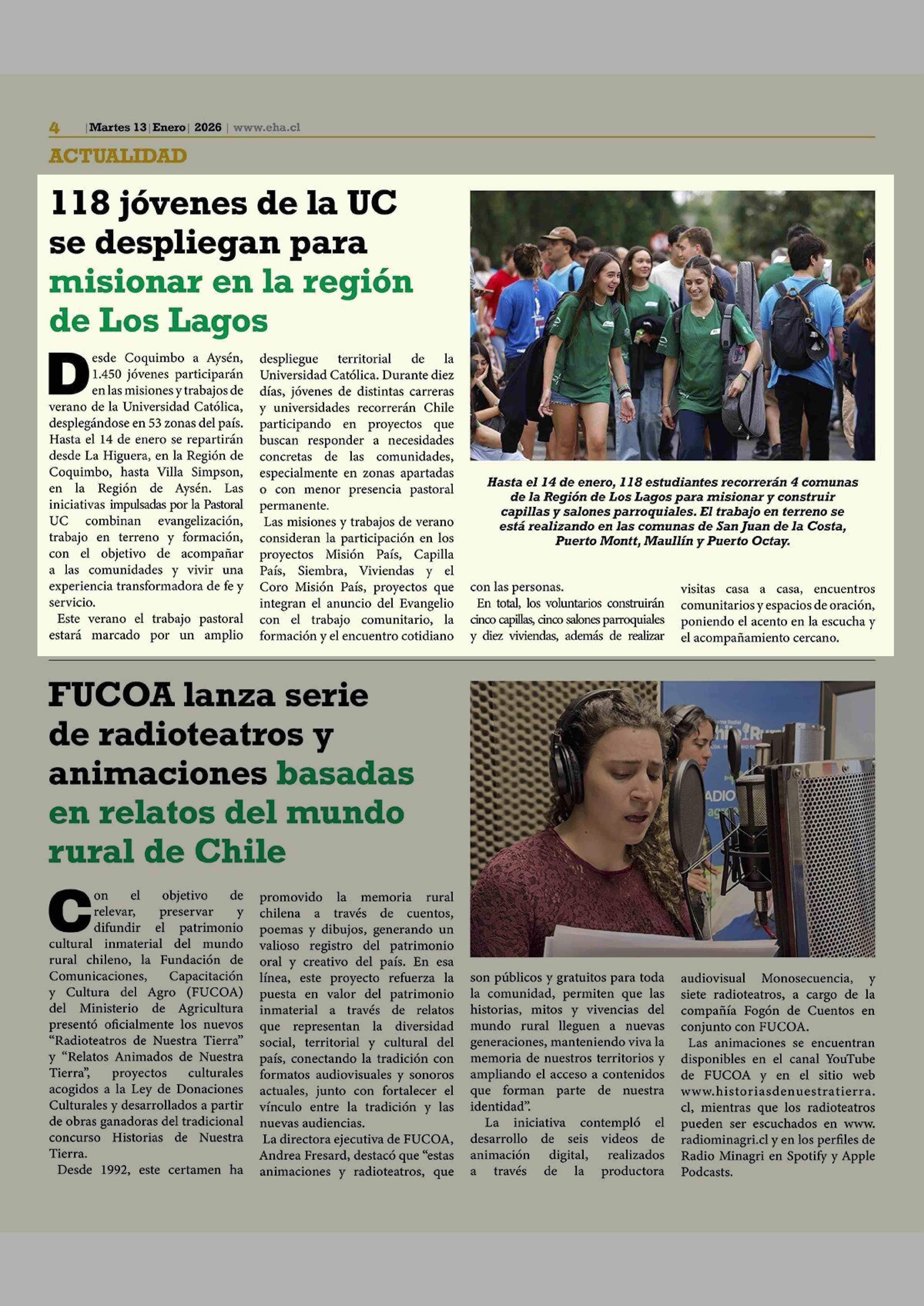 118 Jóvenes de la UC se despliegan para misionar en la región de Los Lagos 13-01-2026 El Heraldo Austral |