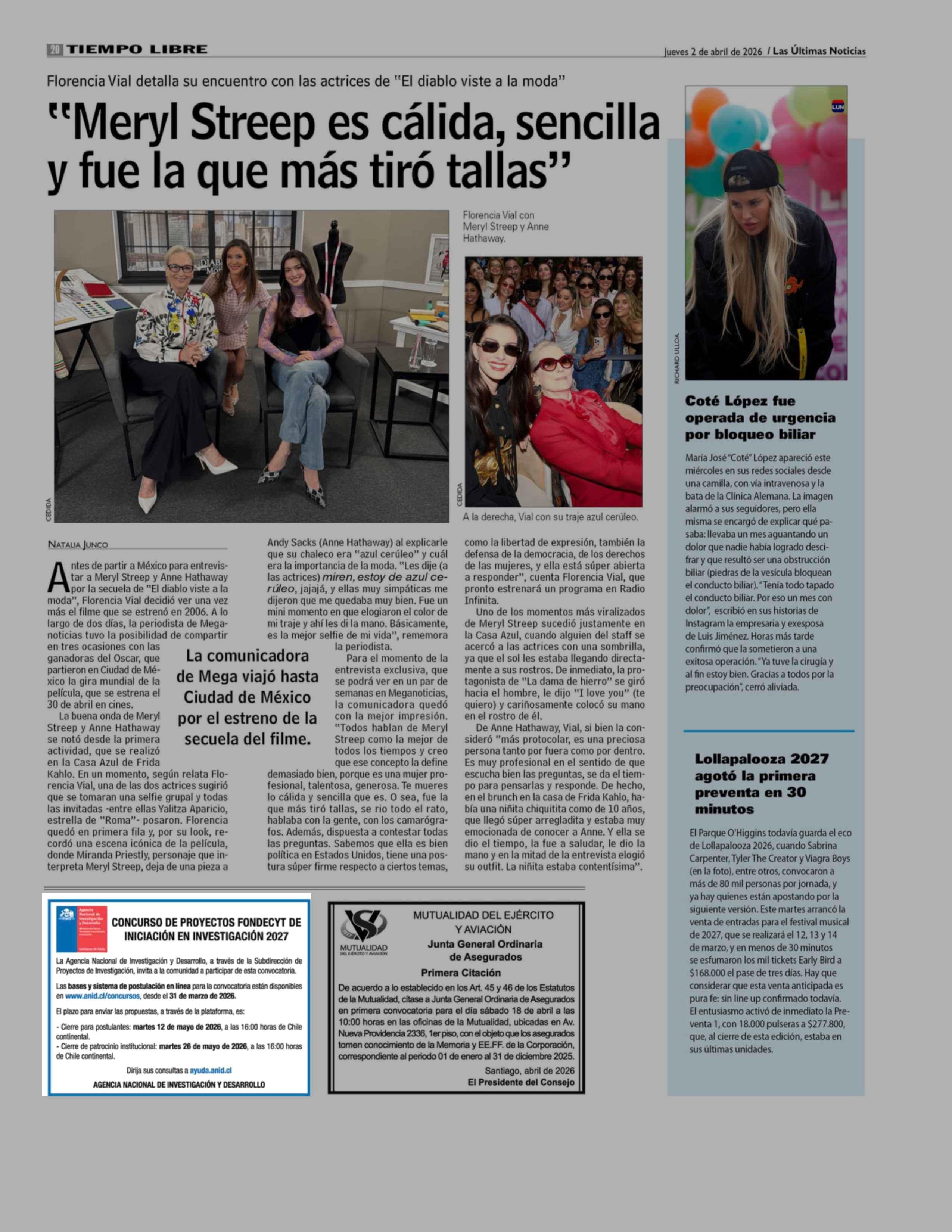 Aviso Licitaciones: La Agencia Nacional de Investigación y Desarrollo 02-04-2026 Las Últimas Noticias |