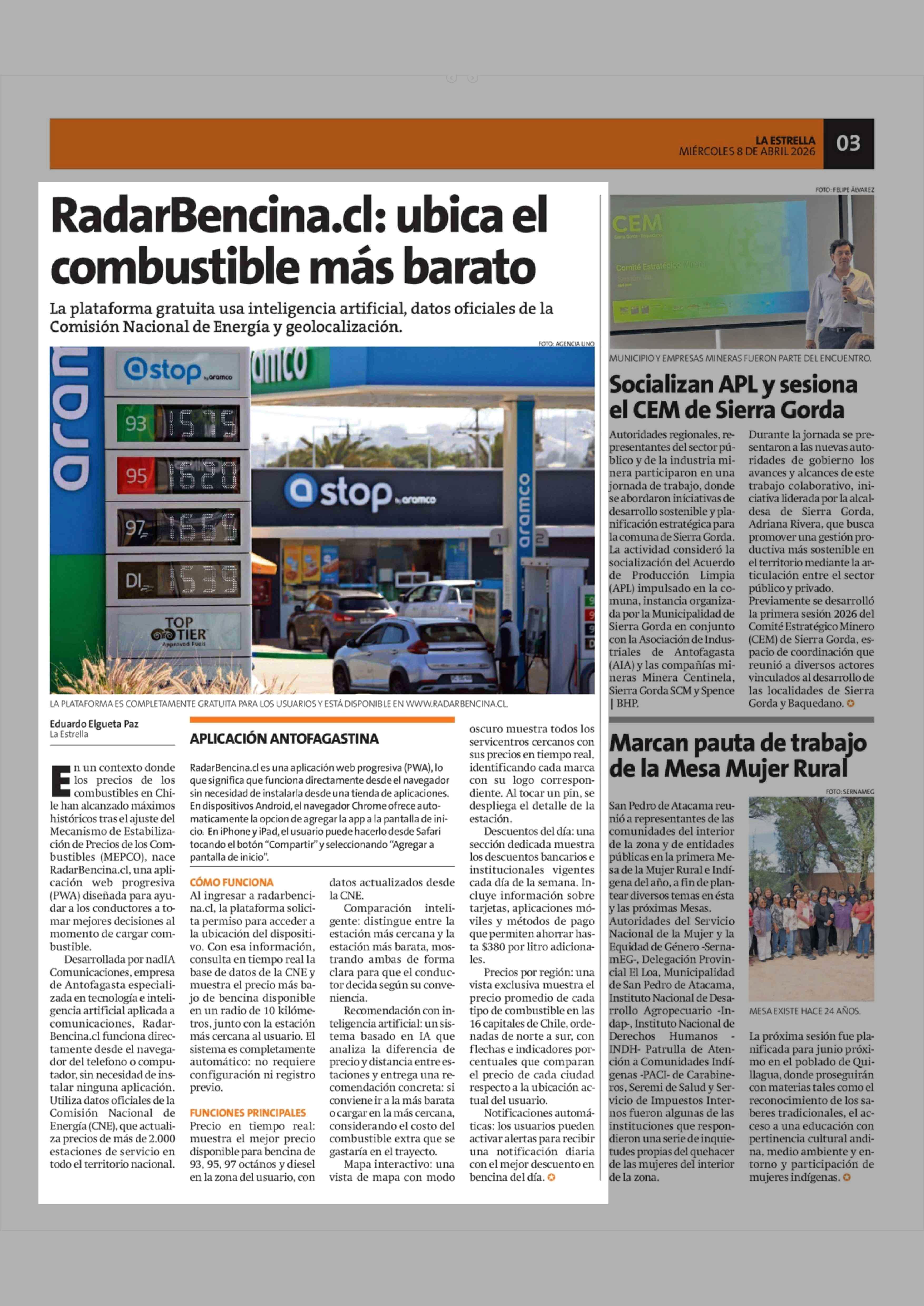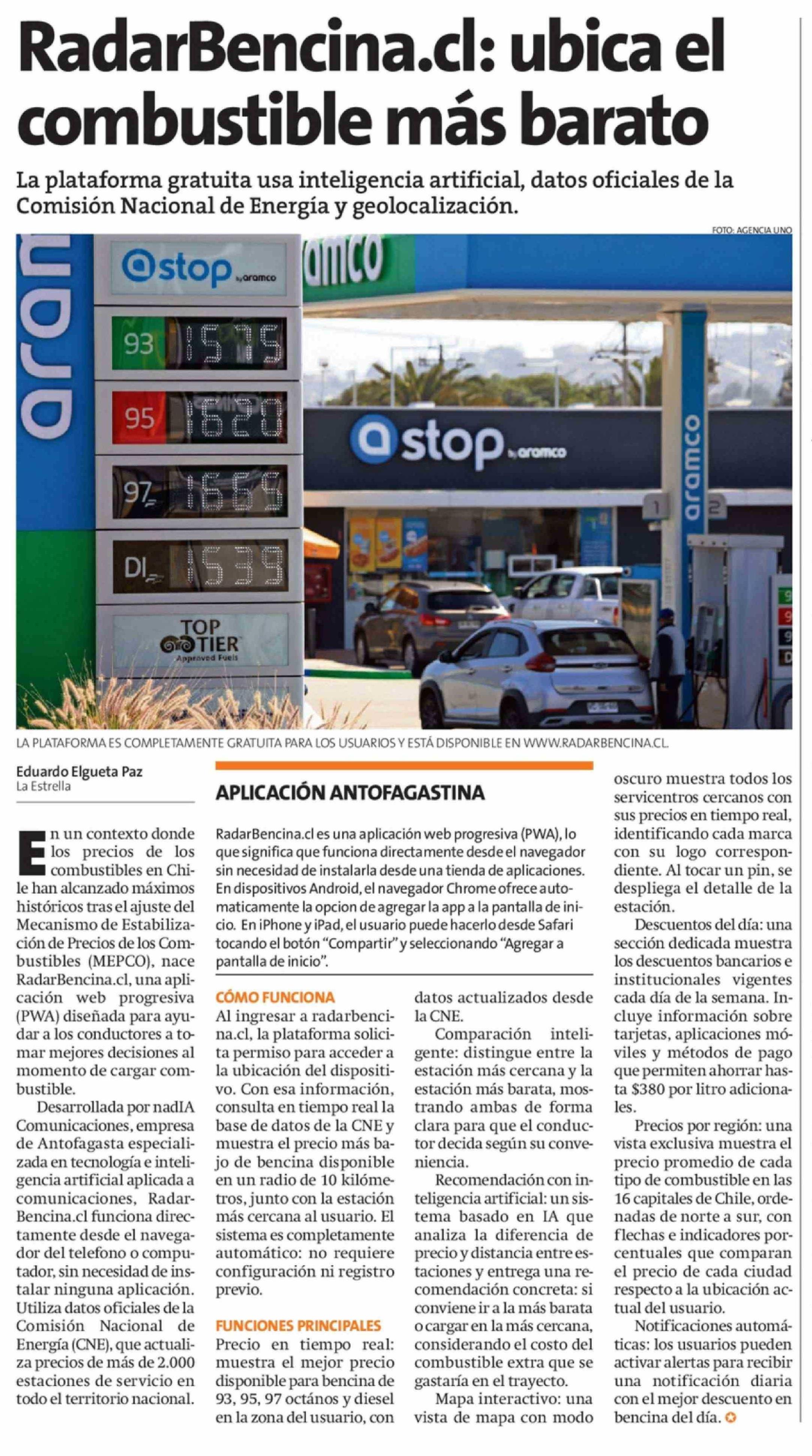 RadarBencina.cl: ubica el combustible más barato 08-04-2026 La Estrella de Antofagasta |