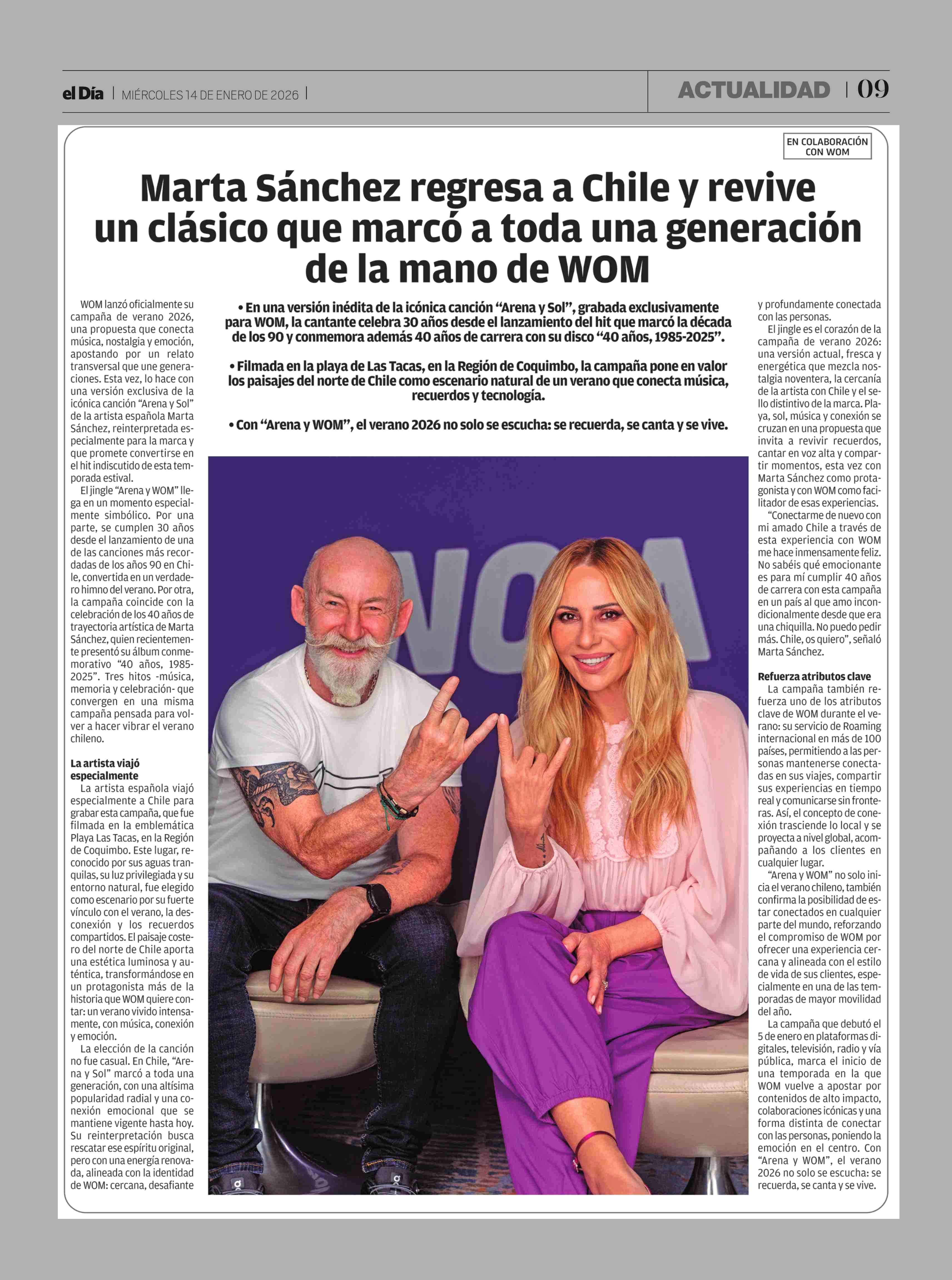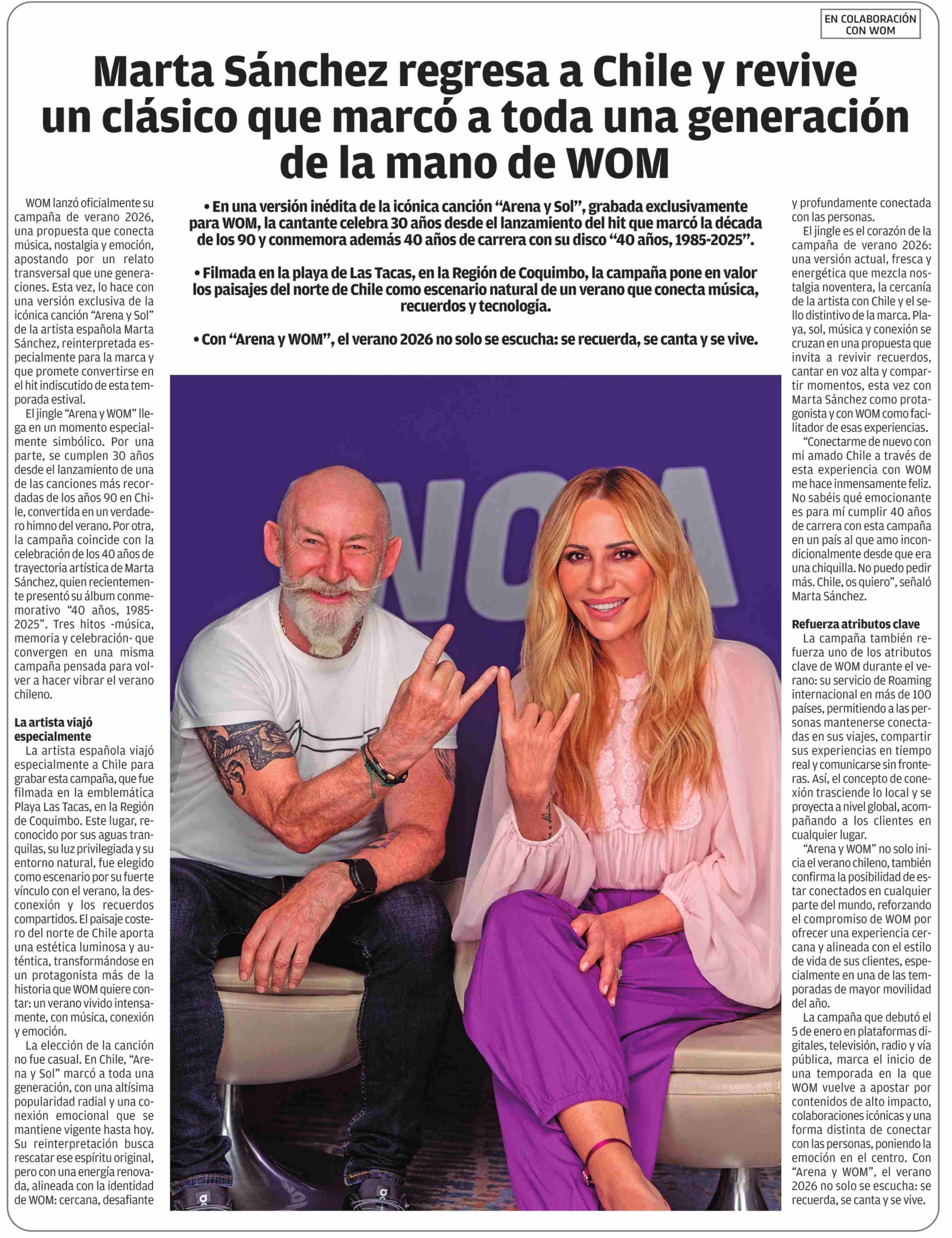 Título: Marta Sánchez regresa a Chile y revive un clásico que marcó a toda una generación de la mano de WOM
