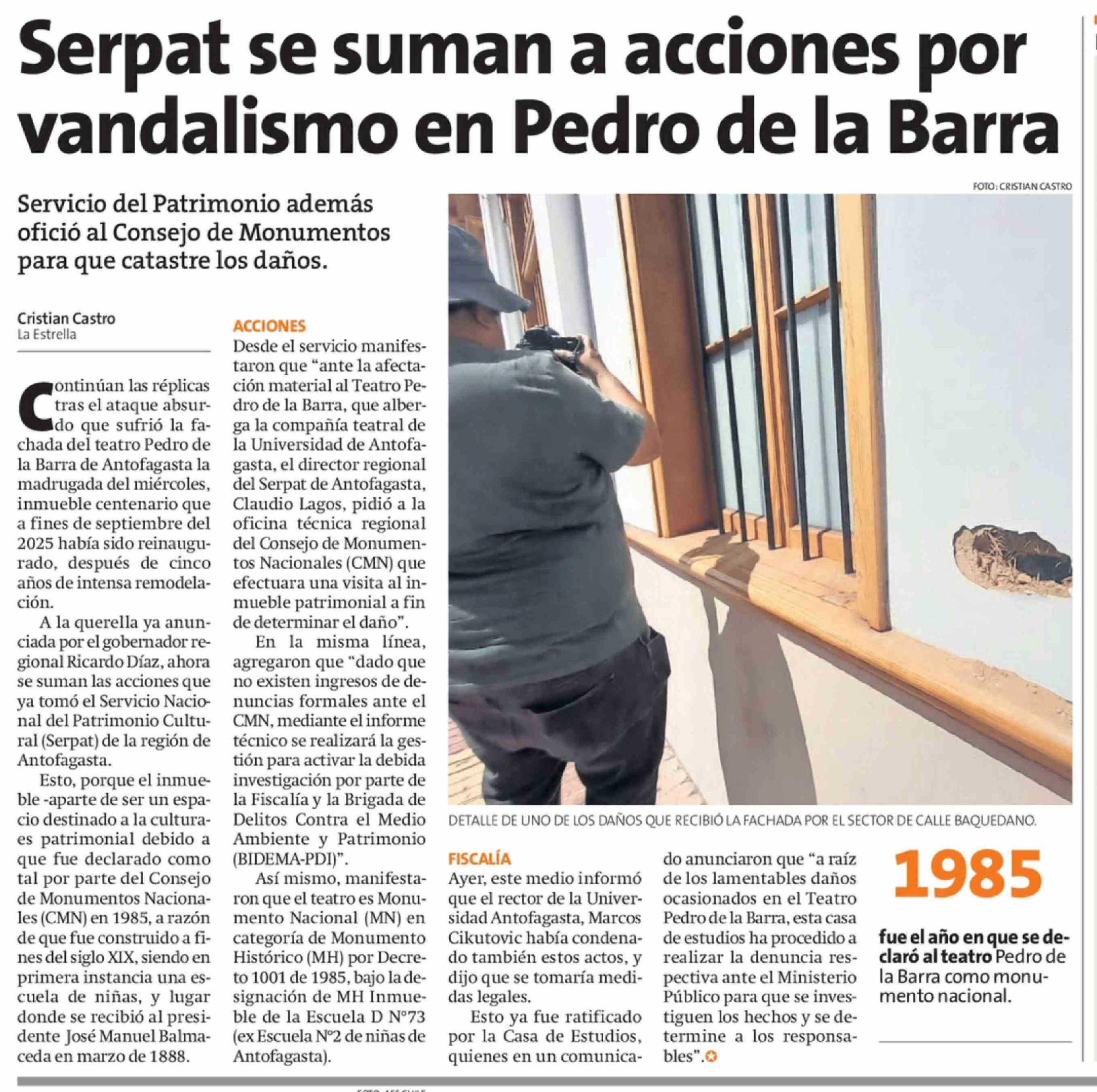 Título: Serpat se suman a acciones por vandalismo en Pedro de la Barra