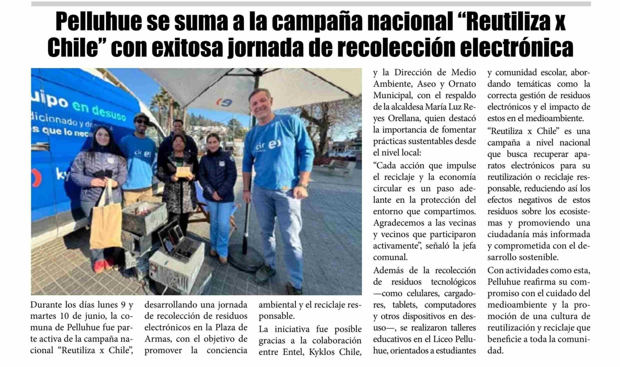 Pelluhue se suma a la campaña nacional “Reutiliza x Chile” con exitosa jornada de recolección electrónica 14-06-2025 El Lector |