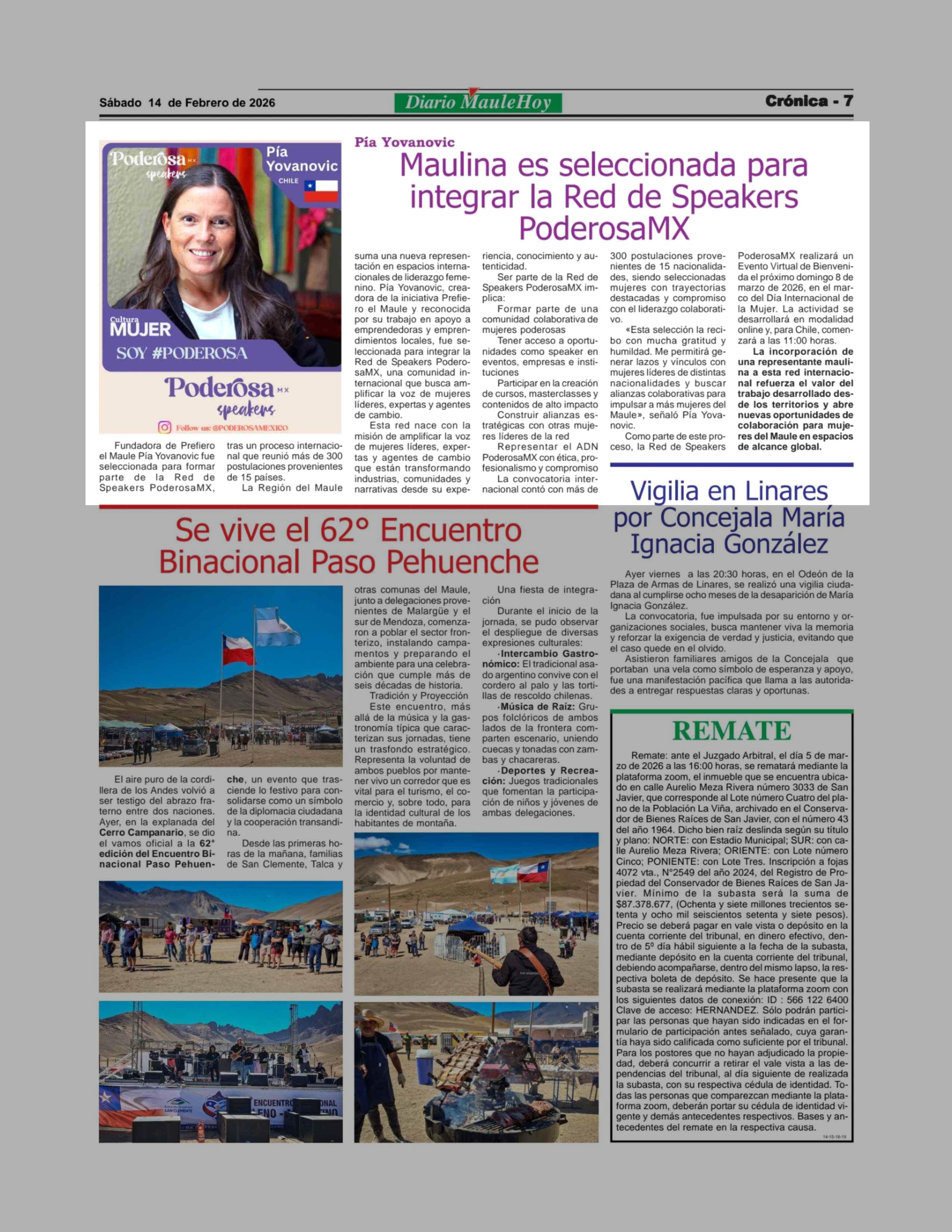 Maulina es seleccionada para integrar la Red de Speakers PoderosaMX 14-02-2026 Maule Hoy |