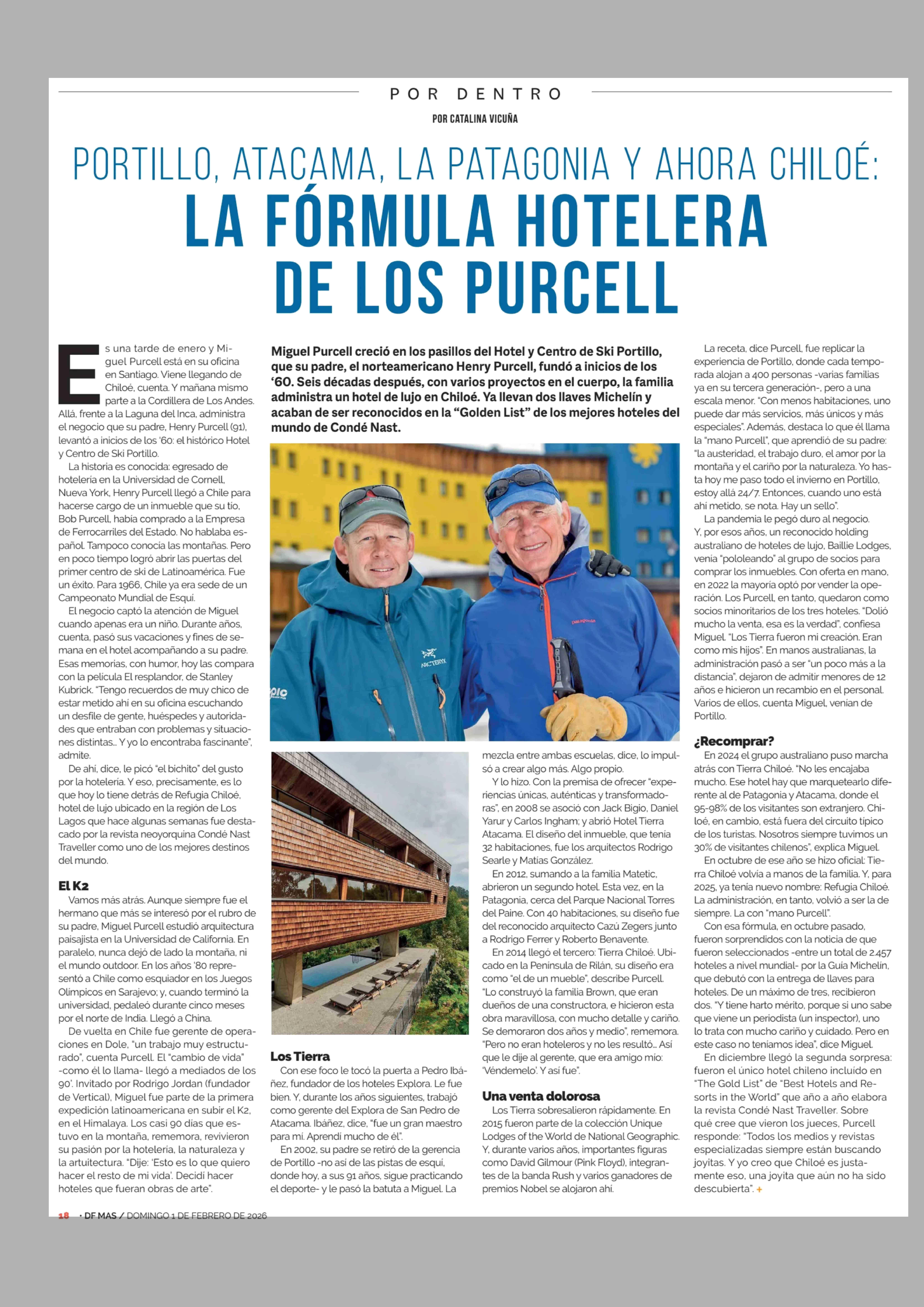 PORTILLO, ATACAMA, LA PATAGONIA Y AHORA CHILOÉ: LA FÓRMULA HOTELERA DE LOS PURCELL 01-02-2026 Diario Financiero |