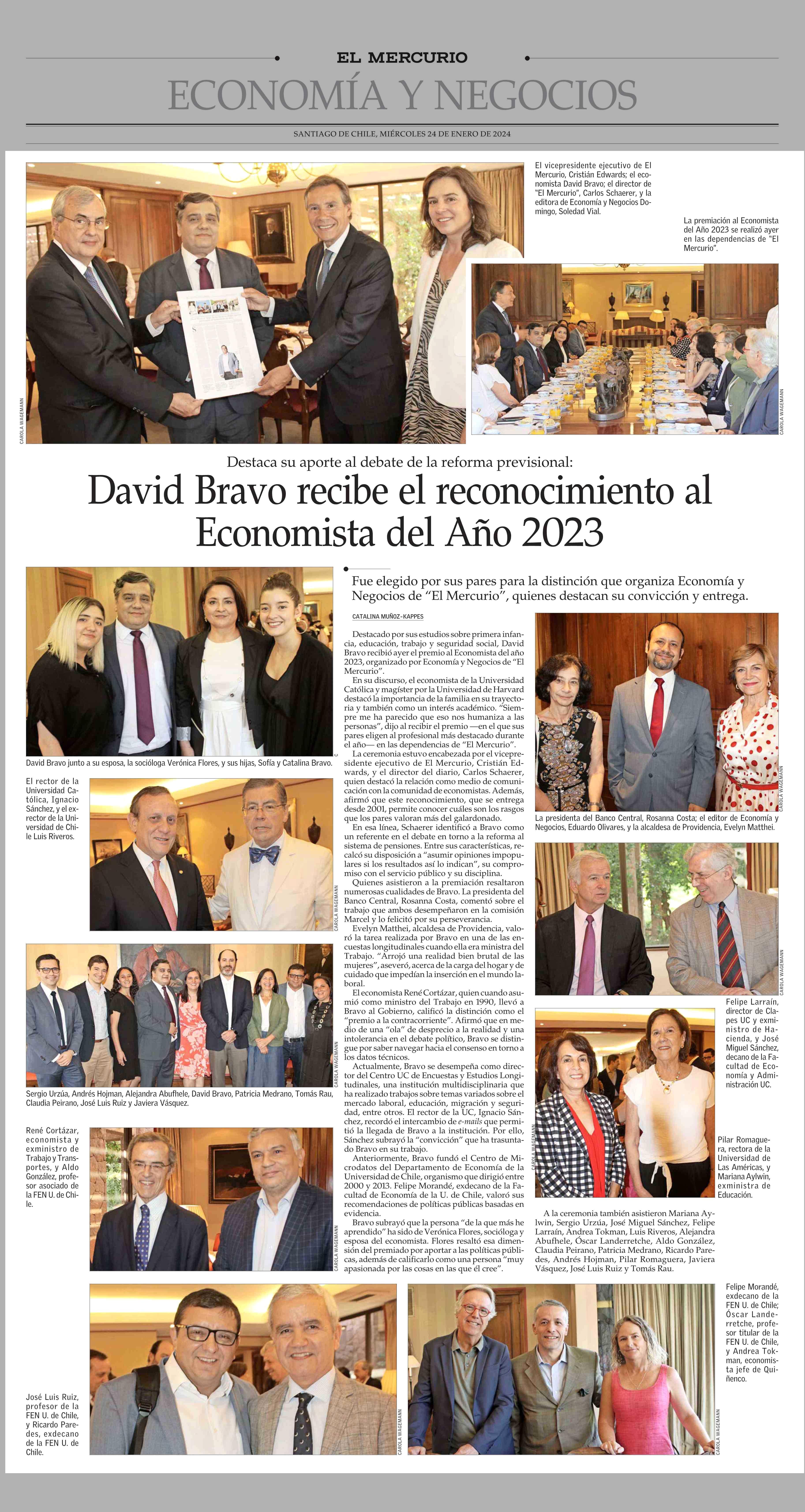 Título: David Bravo recibe el reconocimiento al Economista del Año 2023
