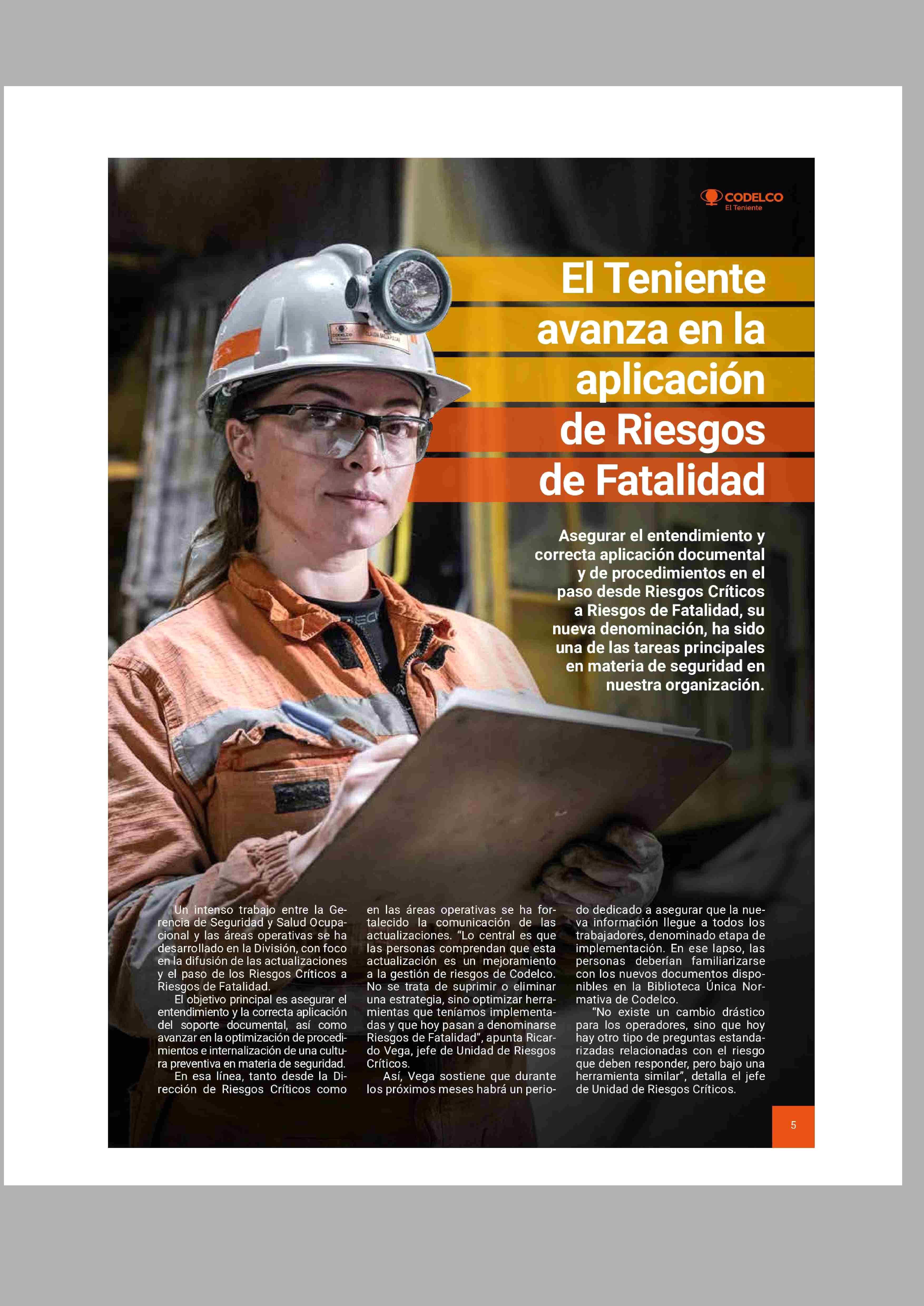 El teniente avanza en la aplicación de riesgos de fatalidad 19-04-2026 El Rancagüino |