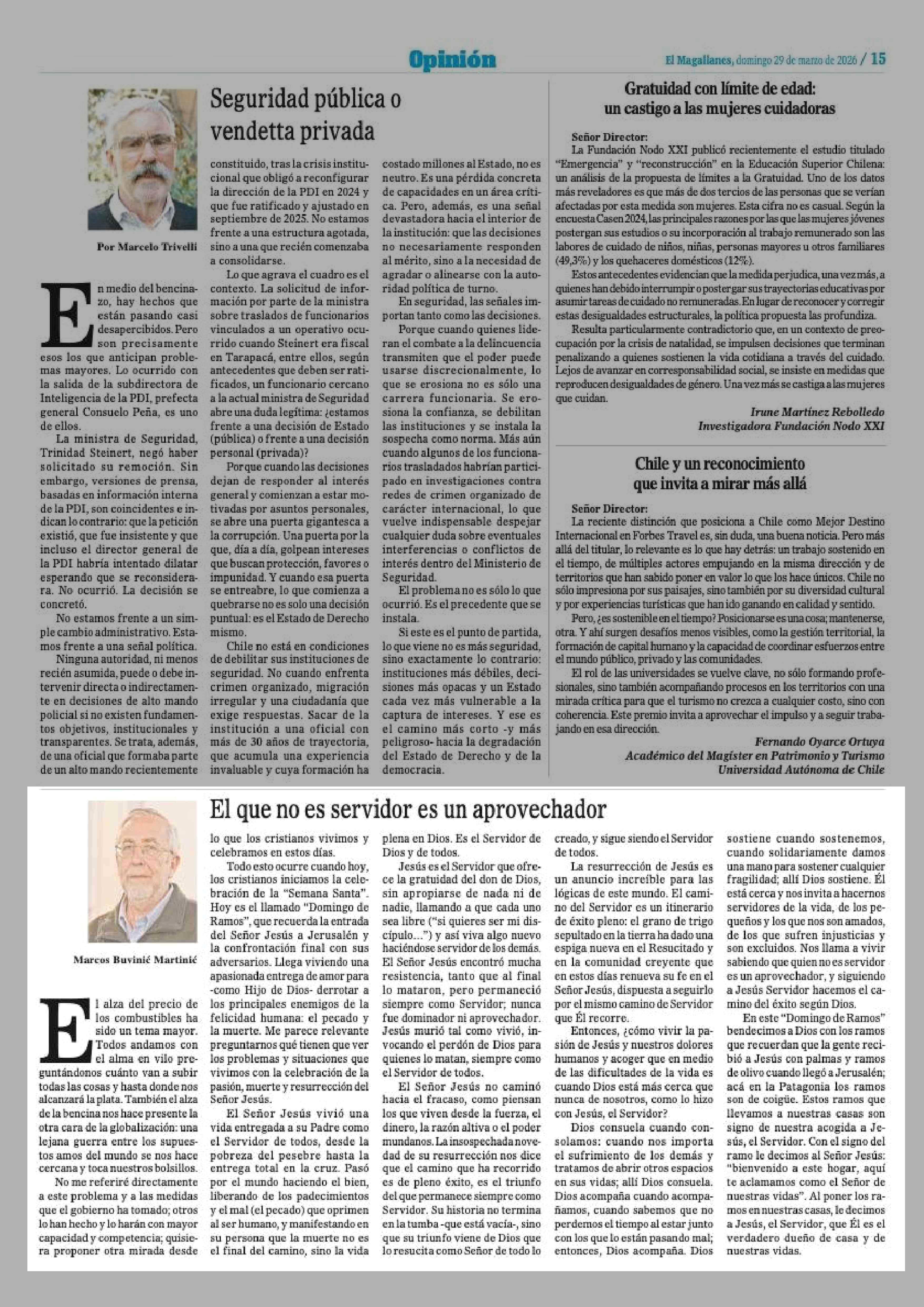 Columnas de Opinión: El que no es servidor es un aprovechador 29-03-2026 El Magallanes |
