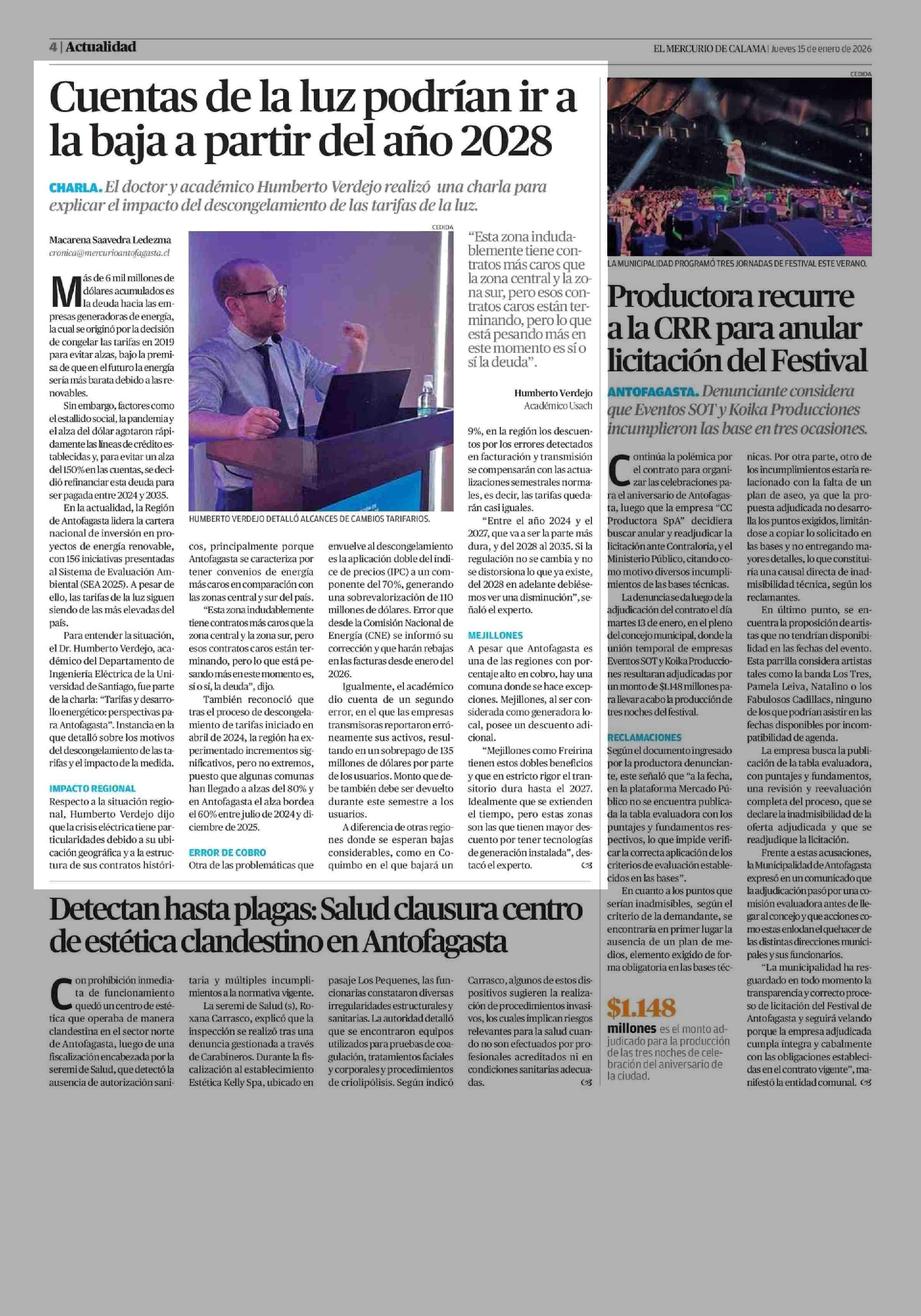 Fecha: 15-01-2026 Sector: Noticia general Región: Región de Antofagasta