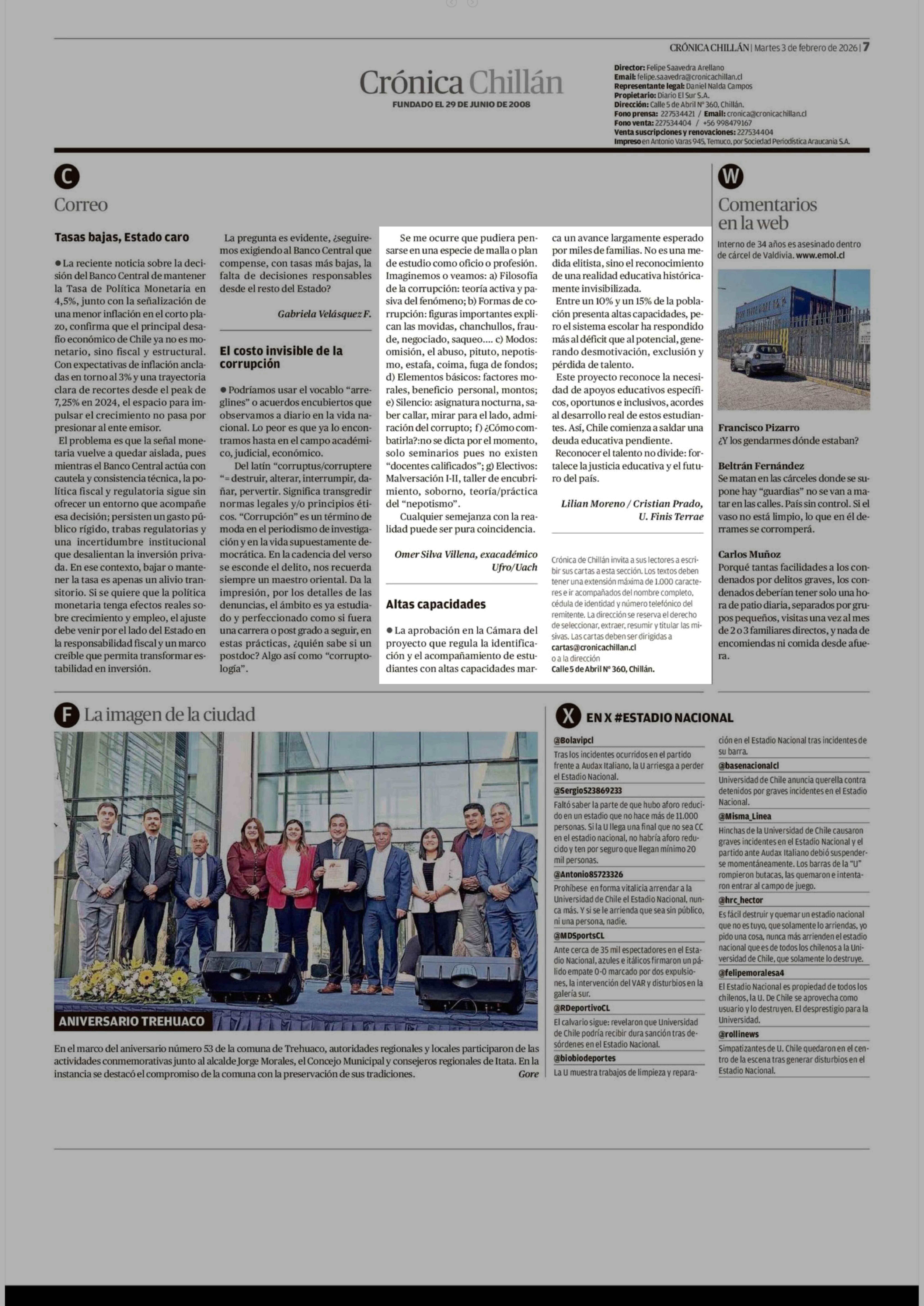 Cartas: Altas capacidades 03-02-2026 Crónica de Chillán |