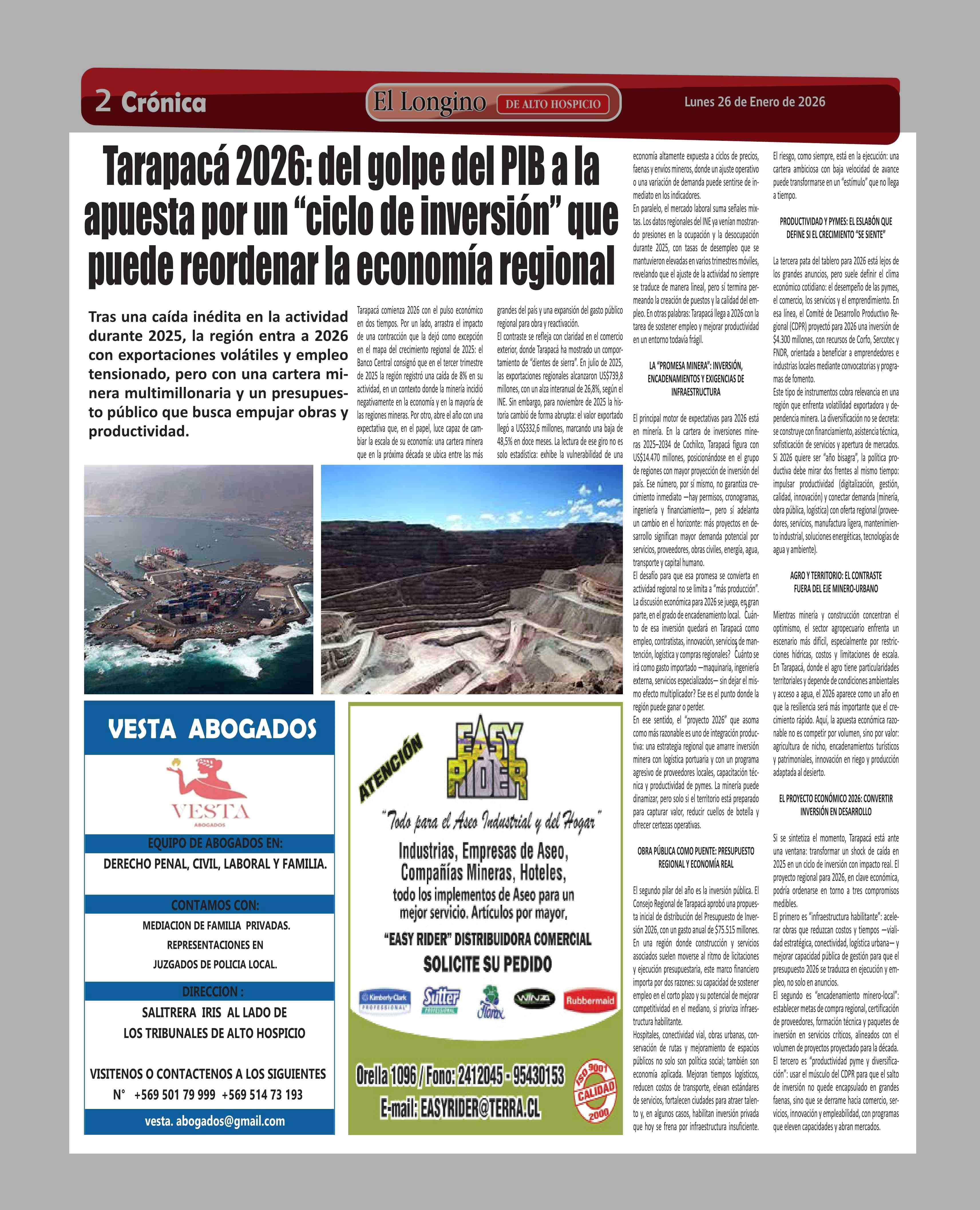 Título: Tarapacá 2026: del golpe del PIB a la apuesta por un "ciclo de inversión" que puede reordenar la economía regional