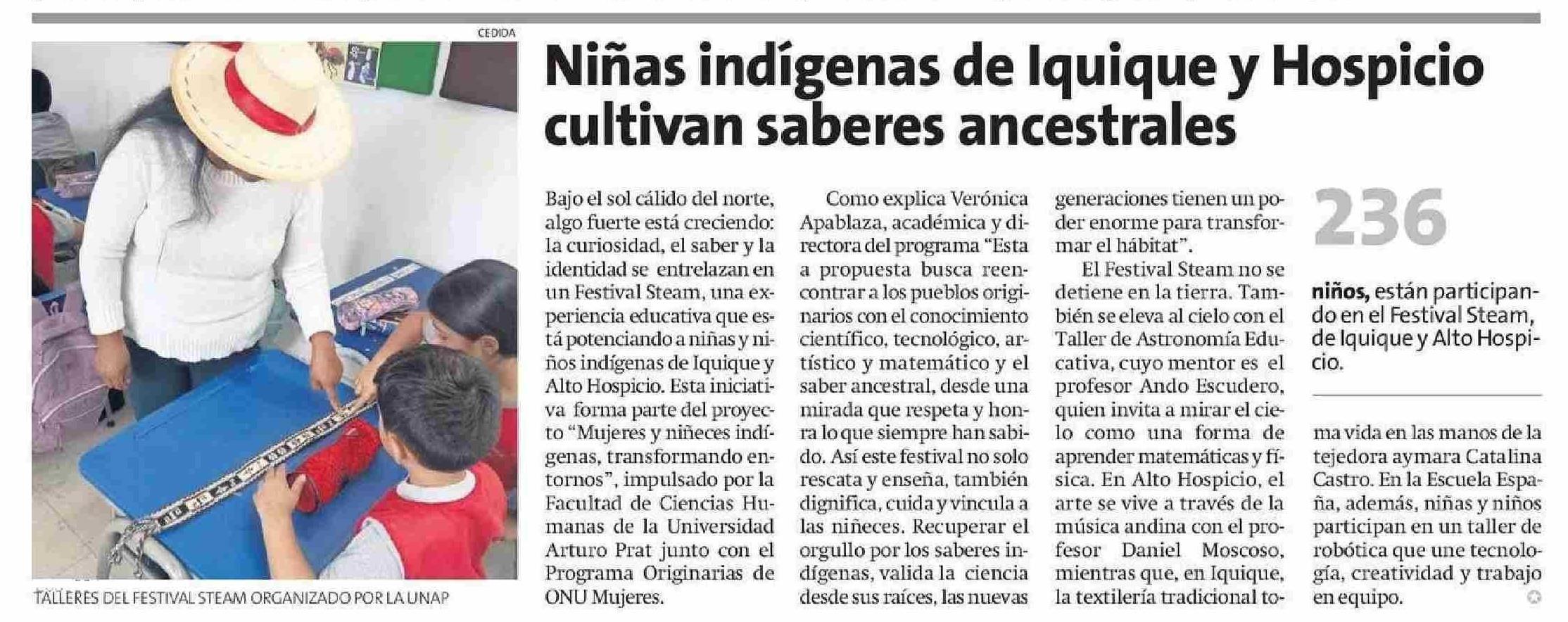 Niñas indígenas de Iquique y Hospicio cultivan saberes ancestrales 05-06-2025 La Estrella de Iquique |
