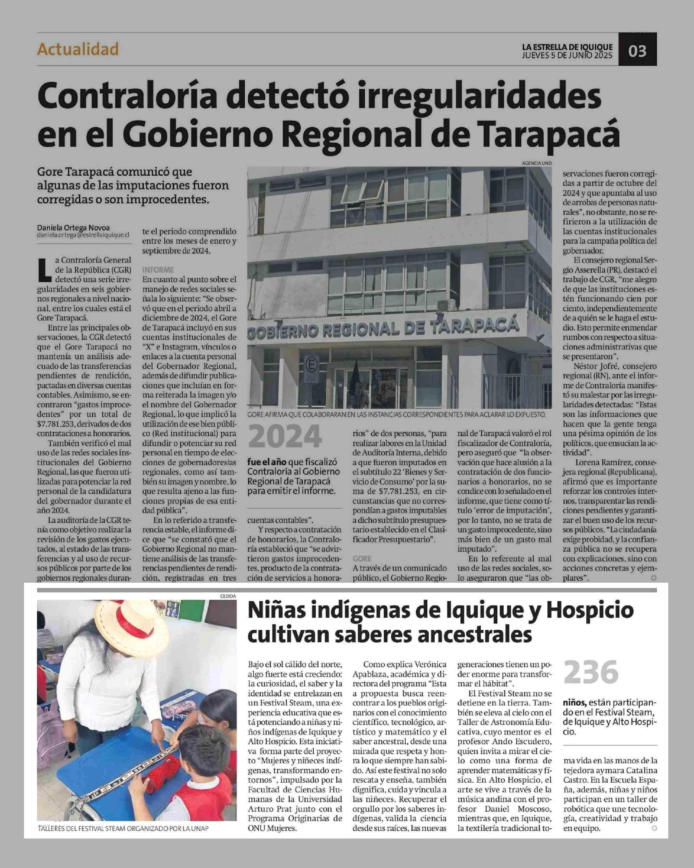 | Fecha: | 05-06-2025 | Sector: | Noticia general | Región: | Región de Tarapacá |