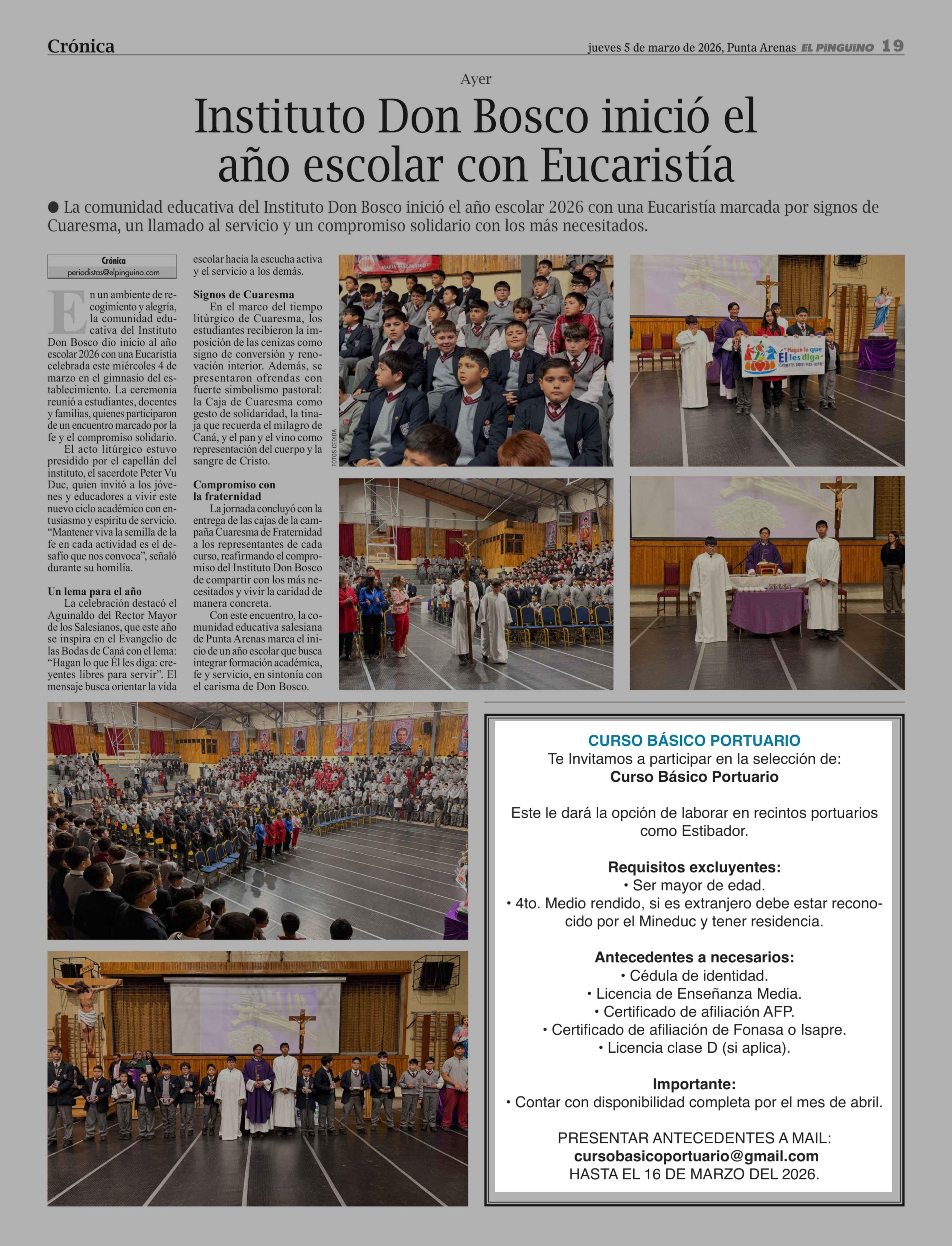 Aviso Publicitario: CURSO BÁSICO PORTUARIO Te Invitamos a participar en la selección de: Curso Básico Portuario 05-03-2026 El Pingüino |