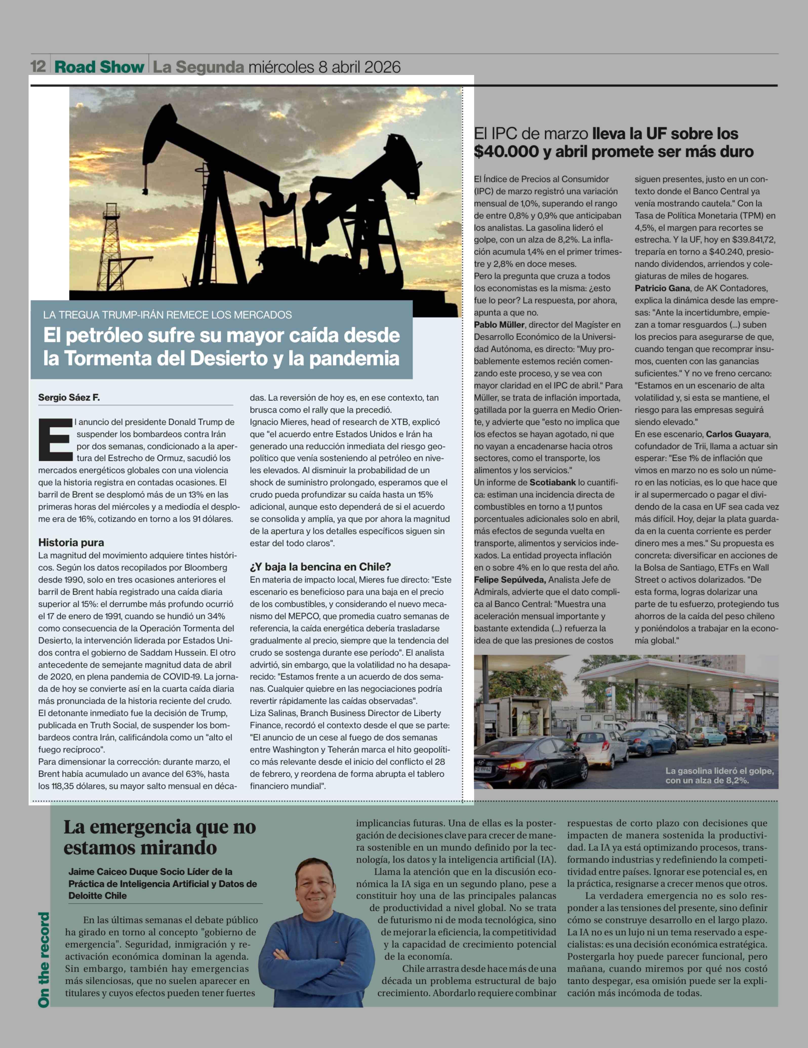 El petróleo sufre su mayor caída desde la Tormenta del Desierto y la pandemia 08-04-2026 La Segunda |