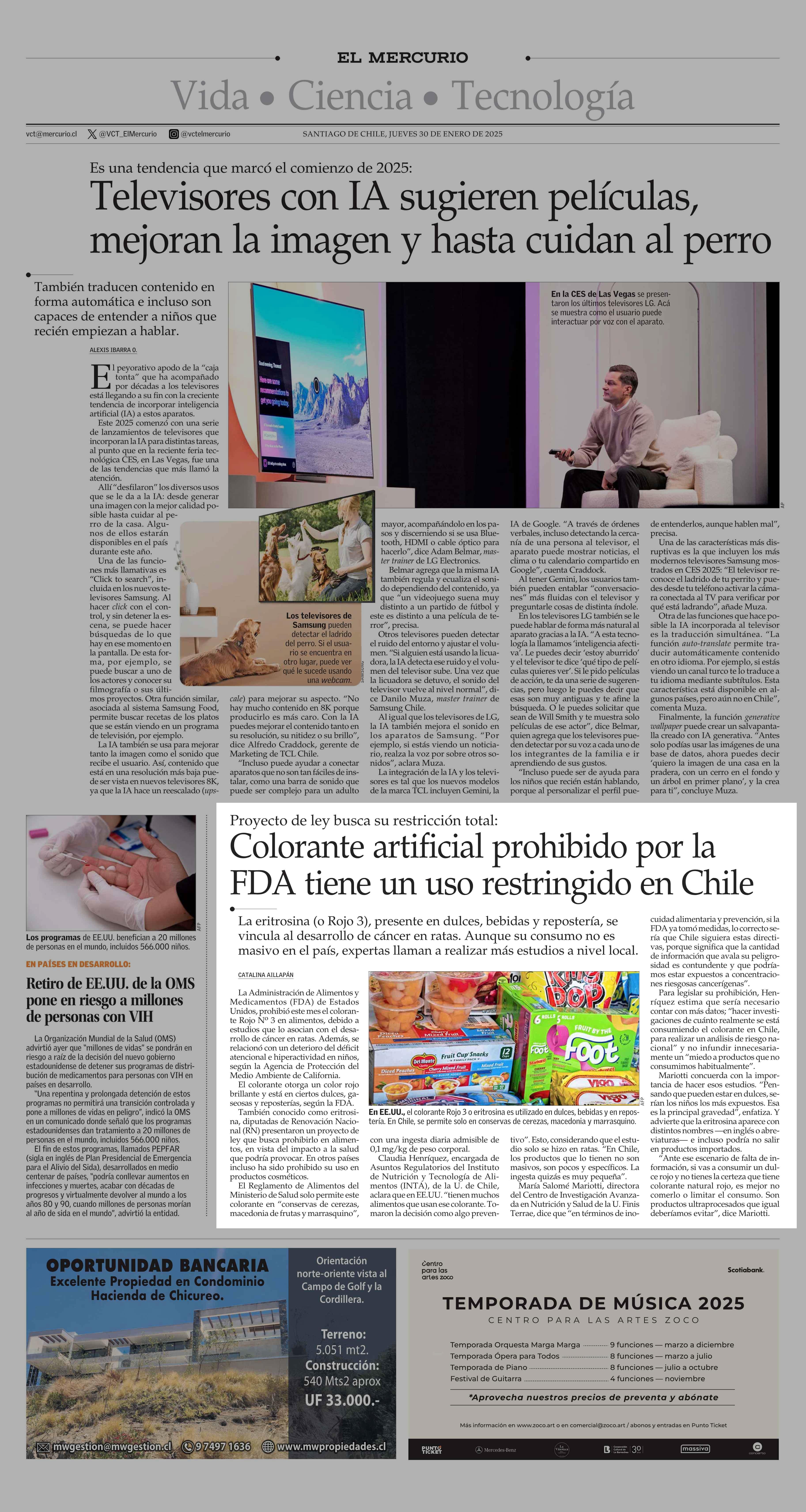 Colorante artificial prohibido por la FDA tiene un uso restringido en Chile 30-01-2025 El Mercurio |