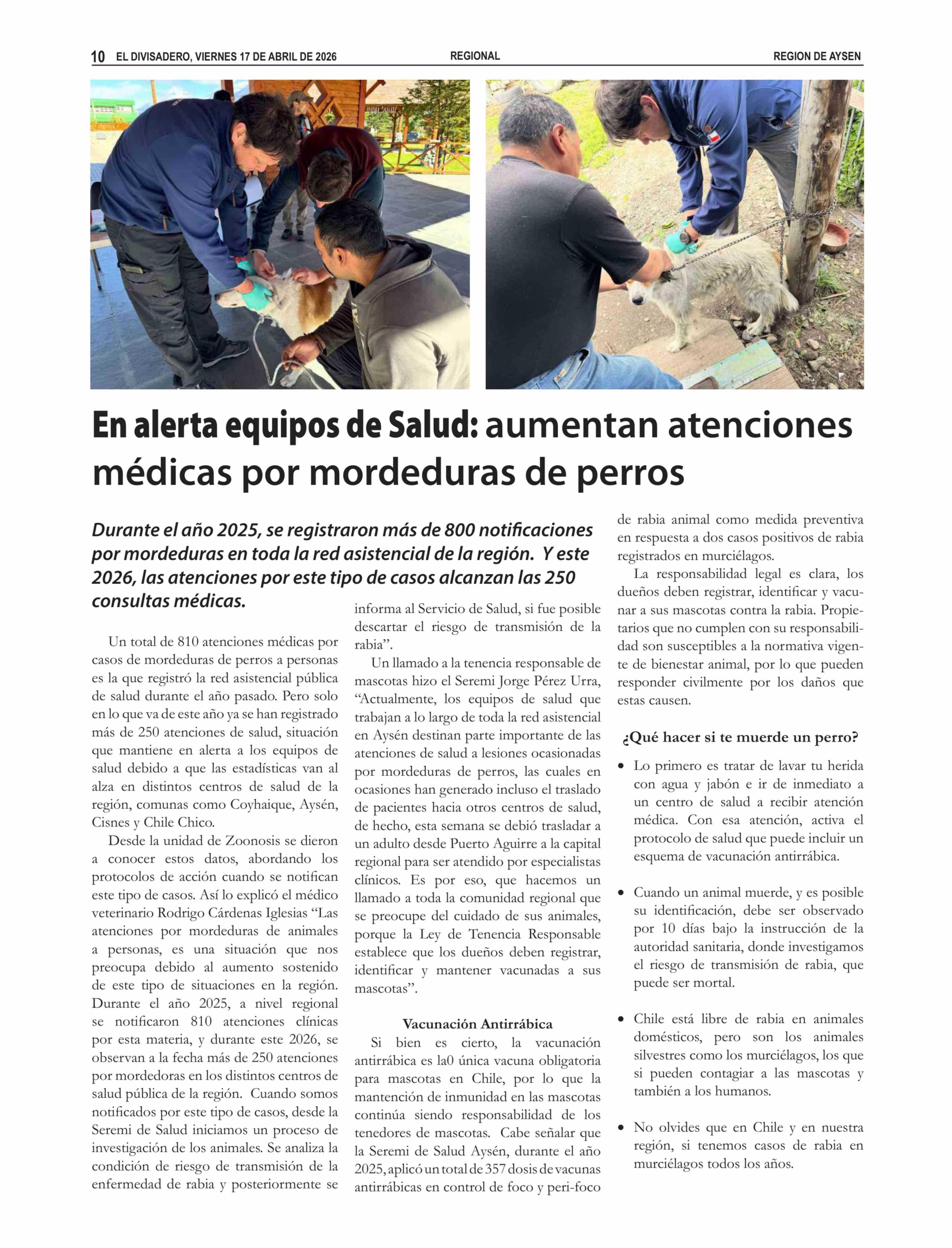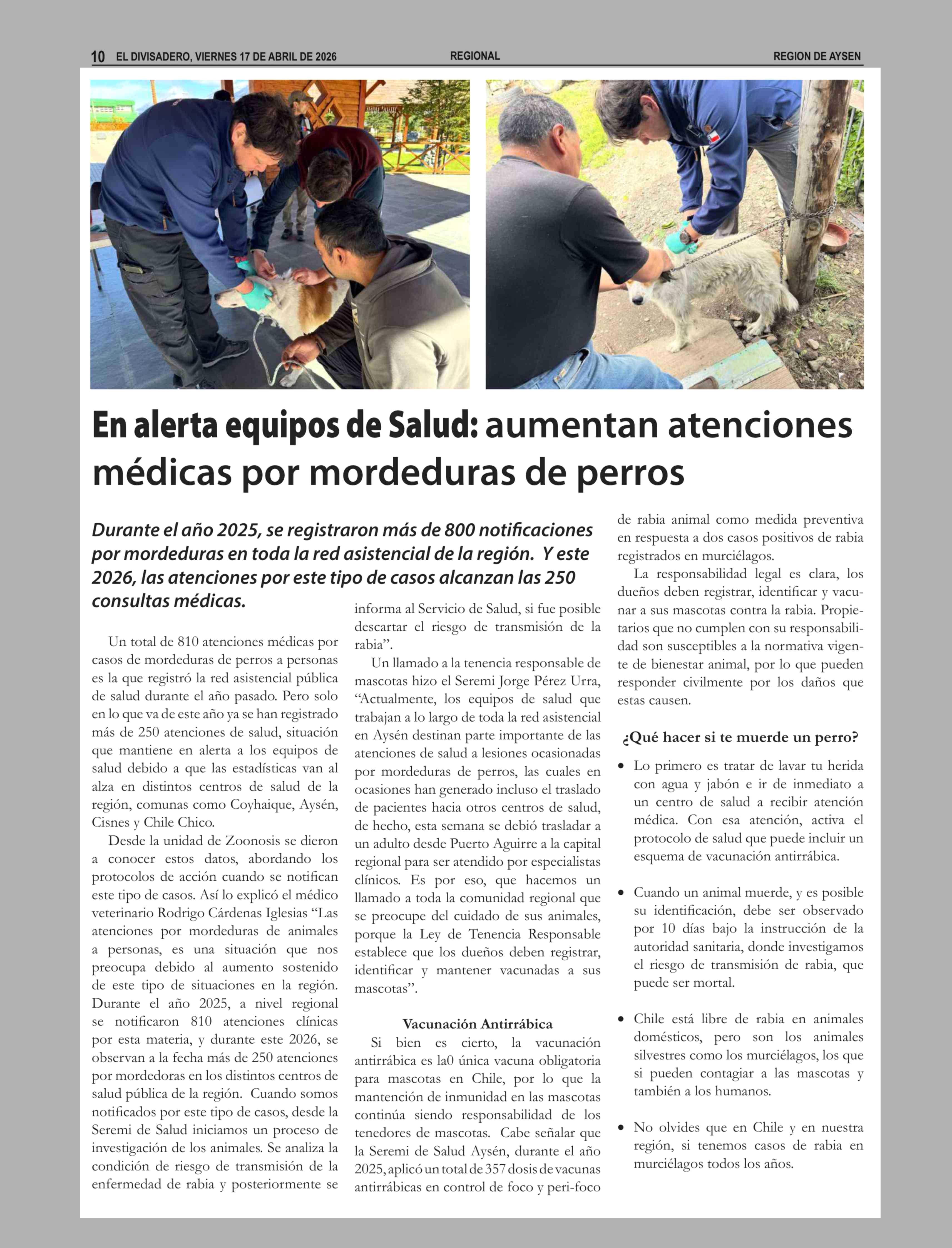 Título: En alerta equipos de Salud: aumentan atenciones médicas por mordeduras de perros