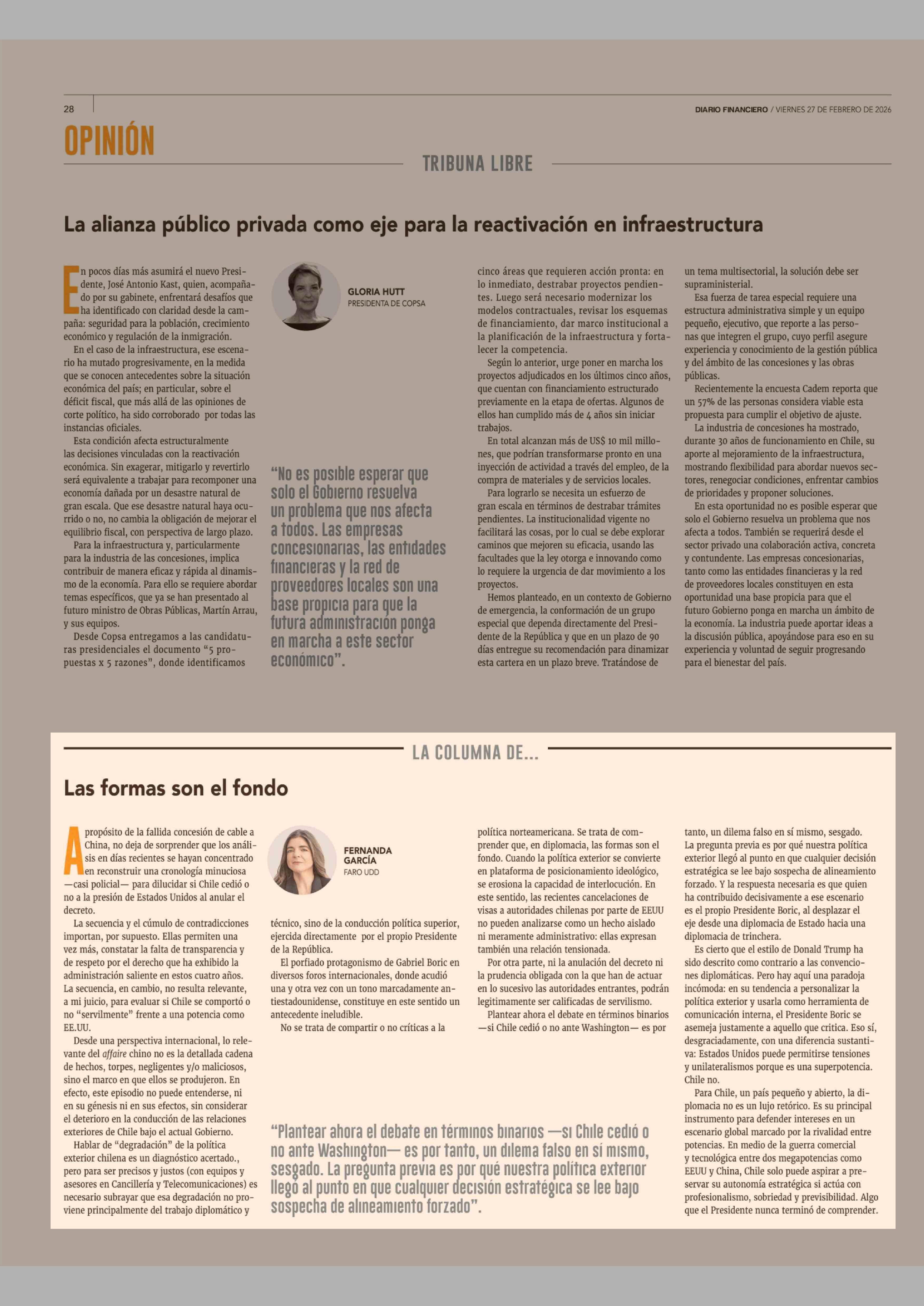 Columnas de Opinión: Las formas son el fondo 27-02-2026 Diario Financiero |
