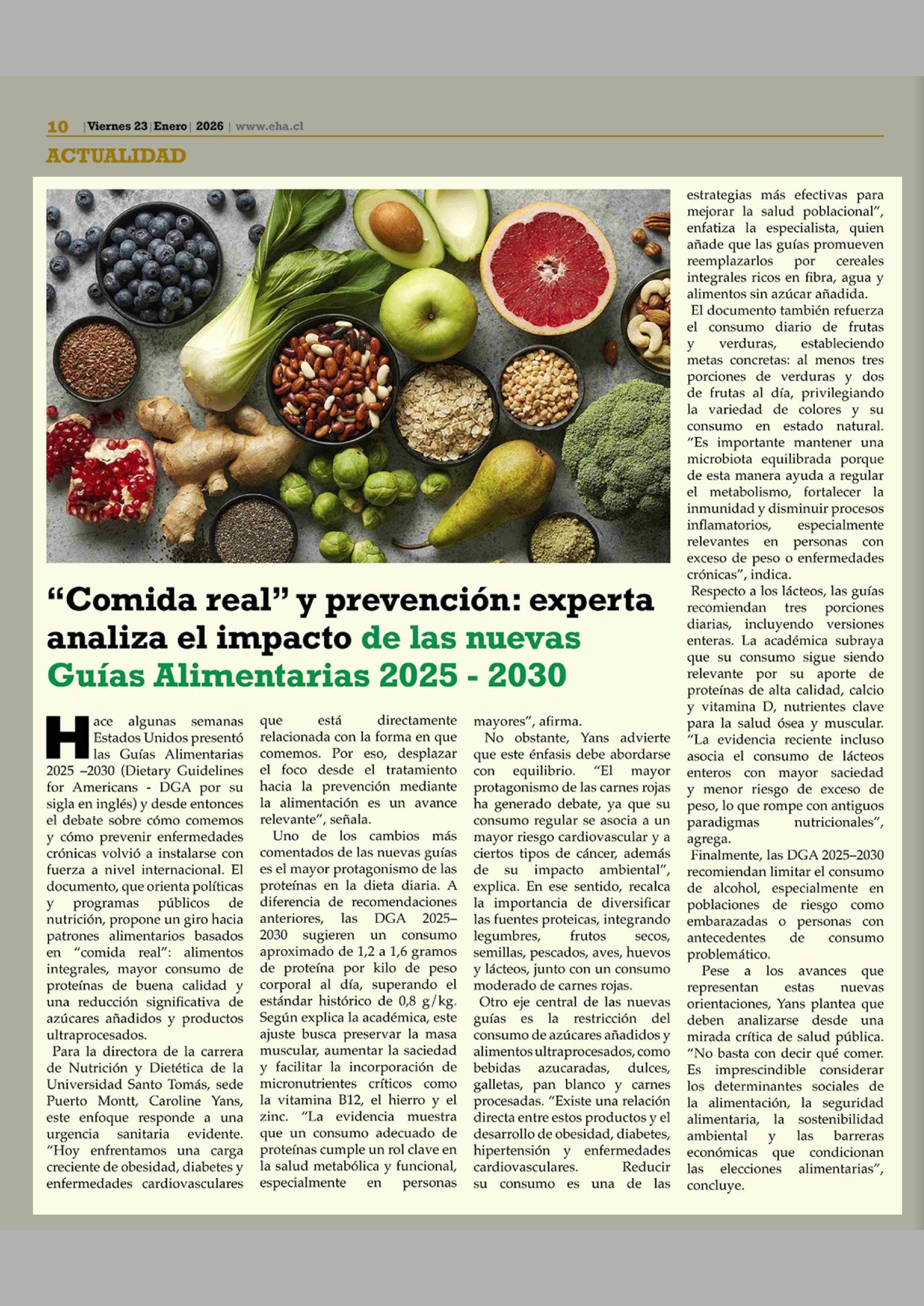 "Comida real" y prevención: experta analiza el impacto de las nuevas Guías Alimentarias 2025 - 2030 23-01-2026 El Heraldo Austral |